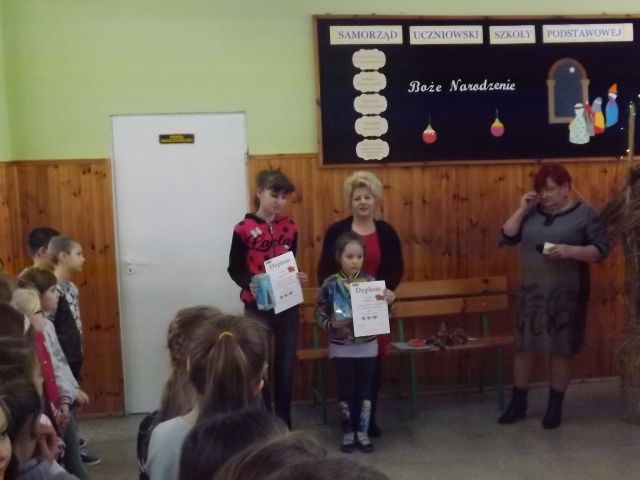 Opiekunka SKO p.Anna Nowosad rozstrzygnęła konkurs na najładniej udekorowaną klasę. Głosowanie odbyło sie na blogu SKO. Zwycięską klasą okazała się klasa VI a na drugim miejscu kl.I. Gratulujemy.W nagrodę otrzymali swiąteczną ozdobę do klasy. Pani Ani dziękujemy za zaangażowanie.