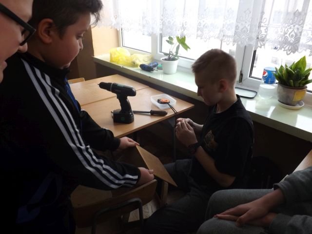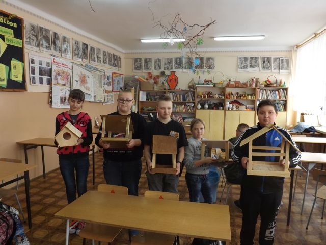 Zima to najtrudniejszy okres dla ptaków zimujących w naszej strefie klimatycznej. Klasa VI na zajęciach techniki wykonała karmniki dla naszych "małych przyjaciół". Zostaną zawieszone na drzewie i na pewno nie zabraknie w nich pożywienia dla zmarzniętych ptaków. Dziękujemy p.Basi Wojtiuk i jej klasie za wykonanie ptasiej stołówki.