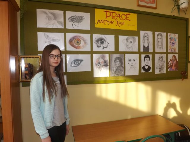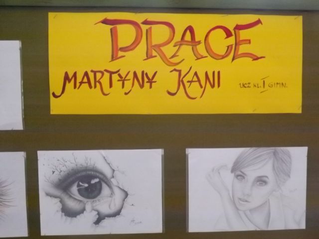 Wystawę prac Martynki mogli obejrzeć niedawno rodzice podczas zebrania semestralnego, na holu korytarza. Załozycielem wystawy jest bibliotekarz szkolny p.Zofia Smolej. Na stałe galeria prac jest wystawiona w bibliotece szkolnej.