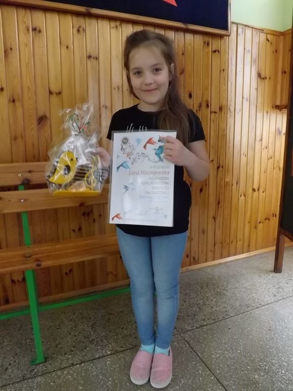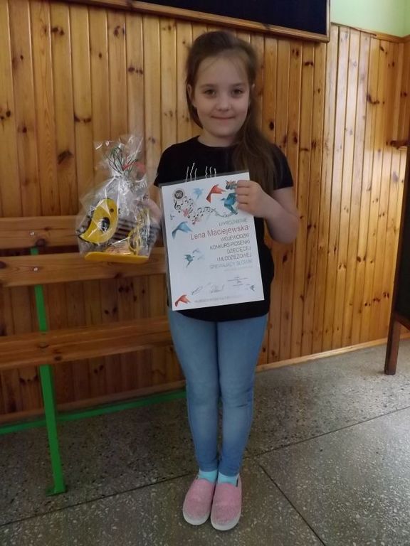 W dniu 27.04.2017r. w sali widowiskowej HDK odbyły się eliminacje powiatowe Wojewódzkiego Konkursu Piosenki Dziecięcej i Młodzieżowej „ŚPIEWAJĄCY SŁOWIK”. Naszą szkołę reprezentowała uczennica klasy I - Lena Maciejewska, opiekun p.Anna Nowosad. Lena otrzymała wyróżnienie. Gratulujemy!