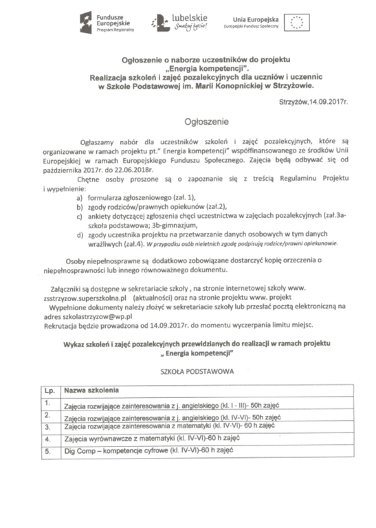 Ogłoszenie o naborze uczestników do projektu "Energia kompetencji"