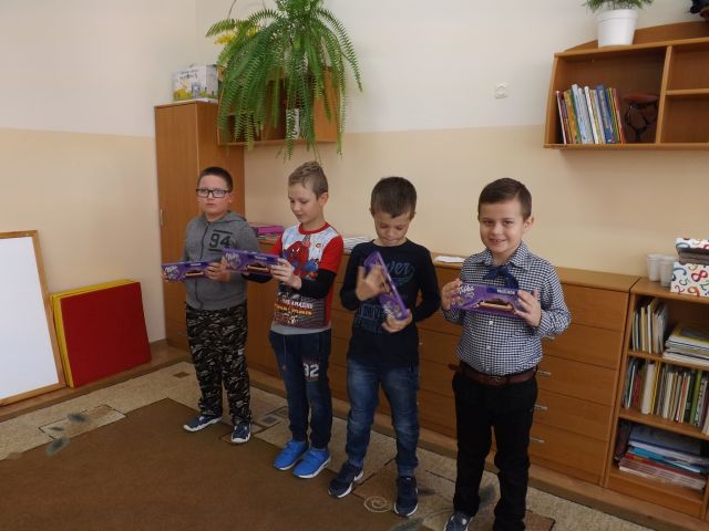 Koleżanki pamiętały o swoich kolegach wręczając im drobne upominki oraz obdarzając ich pięknym i serdecznym uśmiechem. Wszystkim wychowawcom i rodzicom dziękujemy za pomoc w organizacji Dnia Chłopaka w szkole.