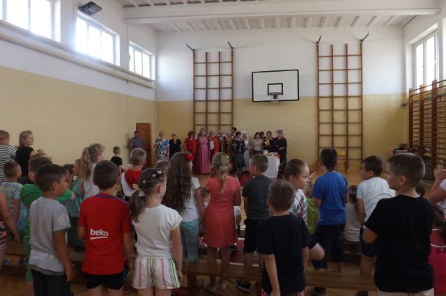 Dnia 5 czerwca 2018 r. w naszej szkole gościliśmy seniorów z Domu Kultury w Horodle , którzy z okazji Dnia Dziecka postanowili wystawić bajkę pt.,, Kopciuszek ” w reżyserii pana Kazimierza Dejera - poety regionalnego. Seniorzy stanęli na wysokości zadania, świetnie wcielili się w swoje role. Było dużo śmiechu i zabawy. A brawa były nagrodą za super przedstawienie. Czekamy na następne wystąpienia seniorzy – dzieciom. Dziękujemy!!