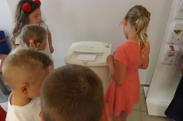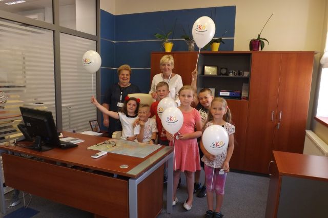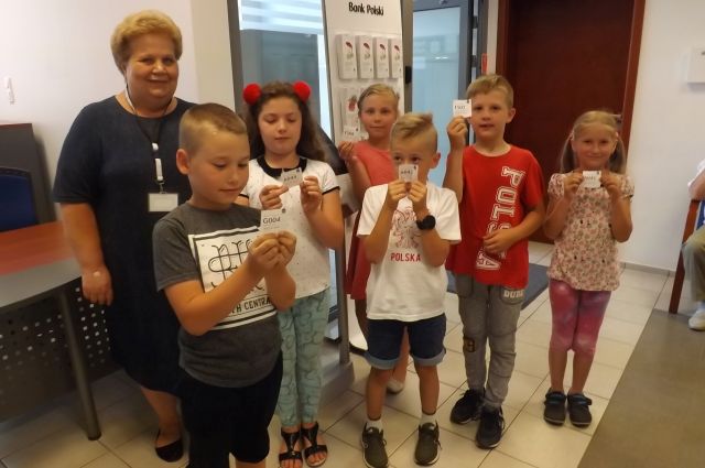 Dnia 5 czerwca 2018r. uczniowie z klasy I i II którzy systematycznie oszczędzają na kontach SKO wraz z opiekunką p. Anną Nowosad pojechali do Banku na wycieczkę. W banku powitała wszystkich pani Wanda B., która oprowadziła po banku i opowiedziała o pracy niektórych osób pracujących na różnych stanowiskach. Uczniowie odpowiadali na pytania, a także sami zadawali pytania na temat bankowości. Dzieci spotkały się z panią dyrektor, która przyjęła ich z radością. Następnie na uczniów czekała słodka niespodzianka oraz drobne upominki z logo banku. Największą atrakcją dla dzieci było pobieranie numerków do kasy, oglądanie różnych walut i maszyny do liczenia pieniędzy oraz zapoznanie się z obsługą bankomatu. Na koniec wykonano pamiątkową fotografię. Wycieczkowicze pełni wrażeń wrócili do szkoły. Serdeczne podziękowania dla pani dyrektor Elżbiecie Denys za dowóz uczniów do Hrubieszowa.