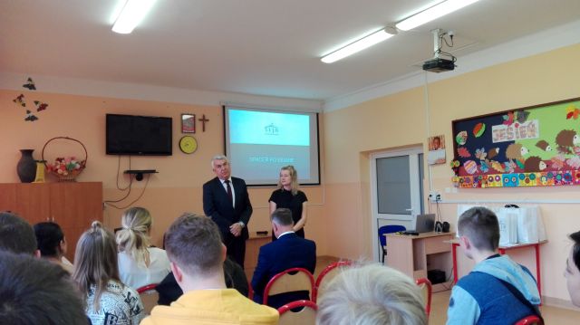 Spotkanie z uczestnikami i opiekunami zapoczątkował pan poseł Sławomir Zawiślak. Następnie przybyłe panie z Wszechnicy Sejmowej w Warszawie przeprowadziły wykład dotyczący architektury, historii Sejmu i Senatu. Uczestnicy udali się w wirtualną podróż po salach, korytarzach Sejmu i Senatu. Druga część wykładu poświęcona była zadaniom i funkcji Sejmu i Senatu oraz trybu ustawodawczego.