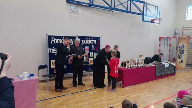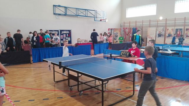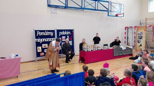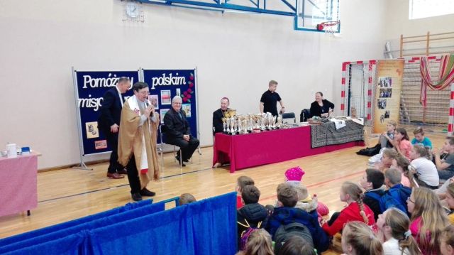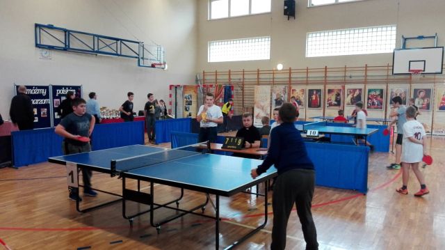 W piątek 26 października W hali sportowej Zespołu Szkół w Białopolu odbył się III Turniej Tenisa Stołowego "Z myślą o misjonarzach". Reprezentacja naszej szkoły w liczbie 43 uczniów, pod opieką pani Barbary Wojtiuk i ks. Michała Efnera, wzięła udział w turnieju. Wszyscy walczyli bardzo zaciekle. Niektórym udało się zdobyć wysokie, medalowe miejsca. Nadia Kapyś zajęła I miejsce w kategorii dziewczyn 1-4 klasy SP, Michał Mielniczuk zdobył III miejsce w kategorii chłopców 1-4 klasy SP. W tej samej kategorii, tuż za podium, na 4 miejscu był Oskar Nawrot z 2 klasy. Nasza szkoła zajęła I miejsce w kategorii drużynowej, ponieważ byliśmy najliczniej reprezentowaną grupą. Uczniowie mieli okazje spotkać się z Ojcem Misjonarzem, który opowiedział o pracy misyjnej w Chinach i Ameryce Południowej. Puchary i dyplomy wręczali: ks. biskup Marian Rojek, wójt gminy Białopole pan Henryk Maruszewski oraz ks. Andrzej Łuszcz dyrektor Dzieł Misyjnych Diecezji Zamojsko - Lubaczowskiej i organizator turnieju. Wszystkim dziękujemy za udział i sportową rywalizację.