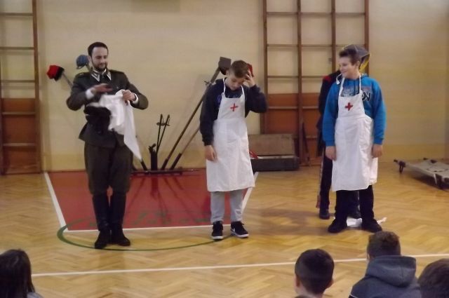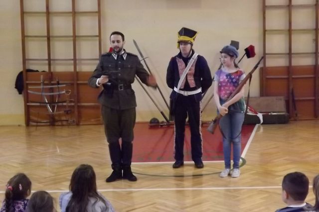 7 grudnia naszą szkołę odwiedziła Grupa Artystyczna "Rekonstrukto" z programem pt. "Ku niepodległej". Zaprosiła nas na opowięść o tym jak bohaterowie walczyli o wolność, honor i ojczyznę. Program zawierał: wesołą lekcję historii, upamiętniającą dążenia niepodległościowe, a w tym: stroje z epoki, informacje o powastaniach narodowych, kolekcja replik broni używanej przez powstańców i w I wojnie światowej, informacje o sytuacji pod zaborami, rolę i legendę marszałaka Józefa Piłsudskiego oraz Legionów, pokaz ekwipunku i uzbrojenia oraz kulturę i sztukę patriotyczną.