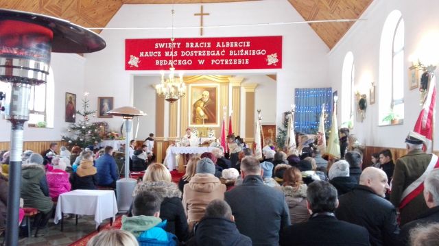 W tym roku takie spotkanie miało miejsce 5 stycznia 2019 r. w Szkole Podstawowej w Majdanie Wielkim. Nasza delegacja składzie pani dyrektor Elżbieta Denys, opiekun pocztu sztandarowego p. Barbara Wojtiuk, uczniowie klasy III gimnazjum Patrycja Góral, Anna Grzesiak, Łukasz Niedziela, jako jedna z 9- ciu szkół udała się do Kaplicy Św. Brata Alberta w Majdanie Wielkim. Mszę celebrował i wygłosił Słowo Boże Jego Ekscelencja Ks. Biskup Marian Rojek ordynariusz diecezji zamojsko – lubaczowskiej.
