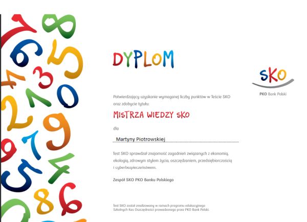 Od 19 kwietnia do 25 kwietnia ruszył ,,Test wiedzy SKO" na platformie blogi SKO. Chętni uczniowie naszej szkoły uczestniczyli w teście zdobywając komplet punktów czyli 10 na 10.