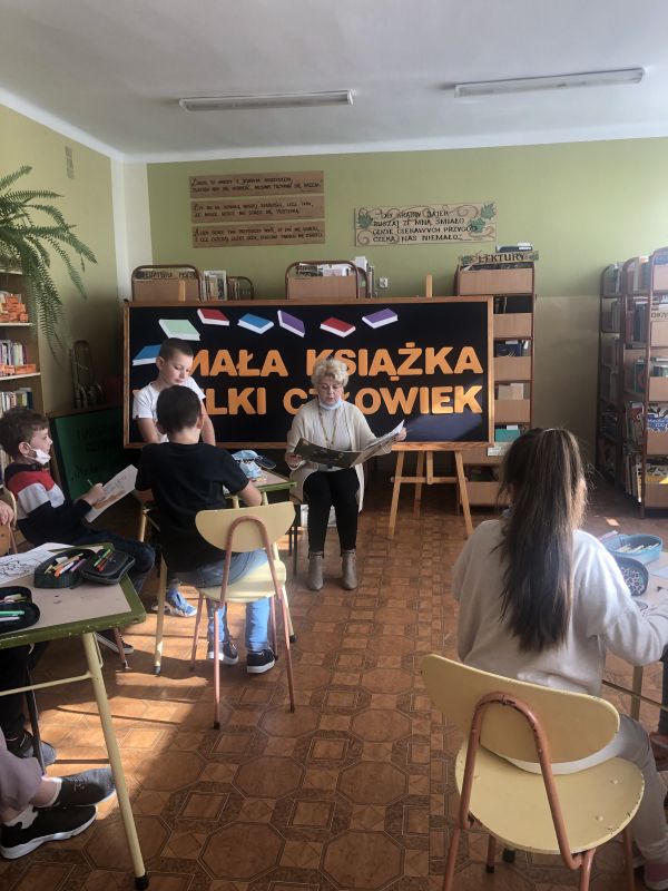 Akcja Narodowe Czytanie, odbywająca się we wrześniu, zapoczątkowała projekt Mała książka, wielki człowiek, realizowany przez nauczyciela biblioteki, panią Zofię Smolej. Projektowi przyświeca hasło: Nikt nie rodzi się czytelnikiem, czytelnika trzeba wychować. Celem projektu jest upowszechnianie czytelnictwa wśród dzieci i młodzieży szkolnej, wprowadzenie dzieci w świat literatury, kształcenie nawyków czytania oraz doskonalenie umiejętności słuchania ze zrozumieniem. W ramach projektu, biblioteka szkolna we współpracy z nauczycielami i rodzicami uczniów SP w Strzyżowie organizuje zajęcia biblioteczne na temat lektur oraz innych tekstów kultury, nawiązujących do rocznic, wydarzeń historycznych, spraw bieżących oraz wynikających z programu nauczania.