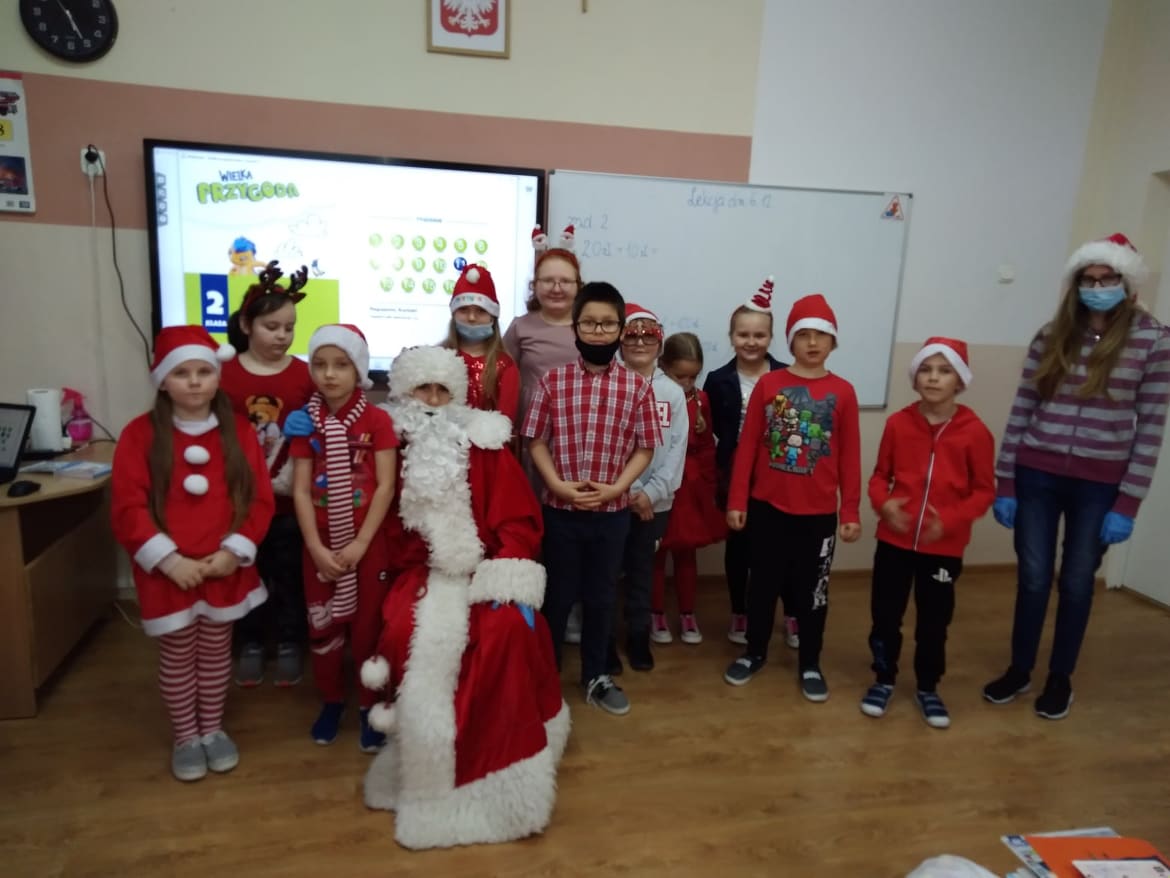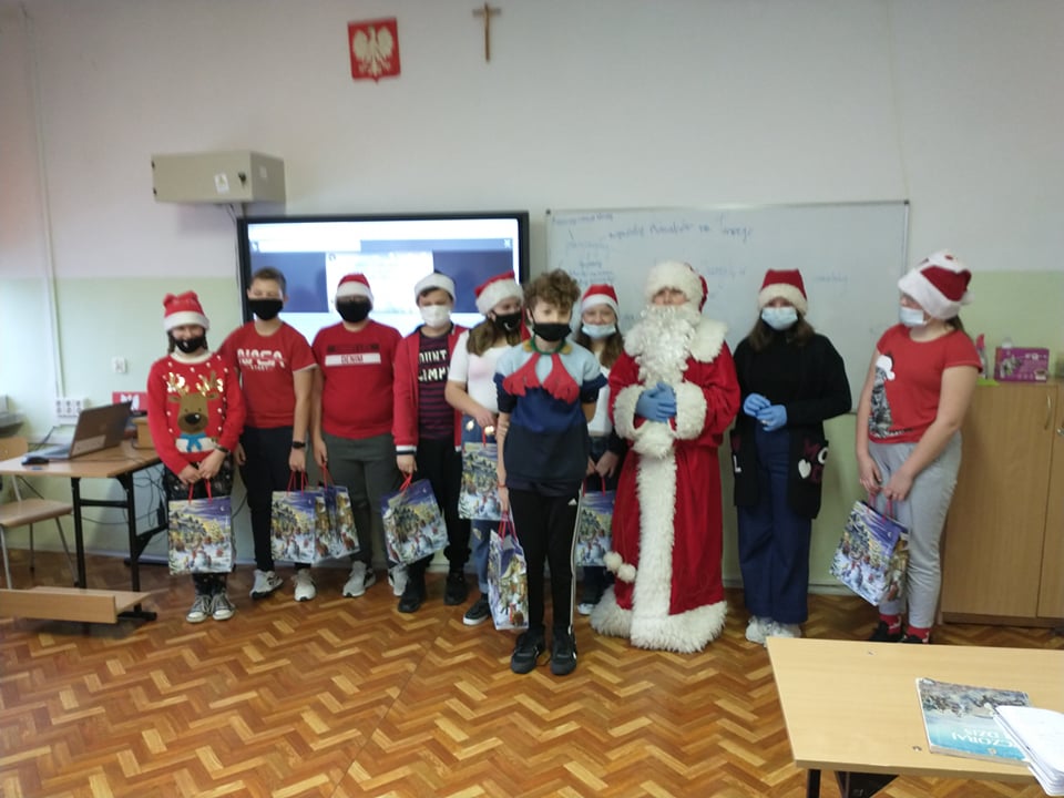 Tegoroczne Mikołajki udały się dzięki klasie VII. Uczniowie wraz z wychowawcą zaprosili św. Mikołaja na wizytę w naszej szkole. Klasowe elfy pomagały Mikołajowi rozdawać prezenty. Wszystkie dzieci zostały obdarowane mikołajowymi paczkami, ale Mikołaj pamiętał też o nauczycielach i pozostałych pracownikach szkoły.
