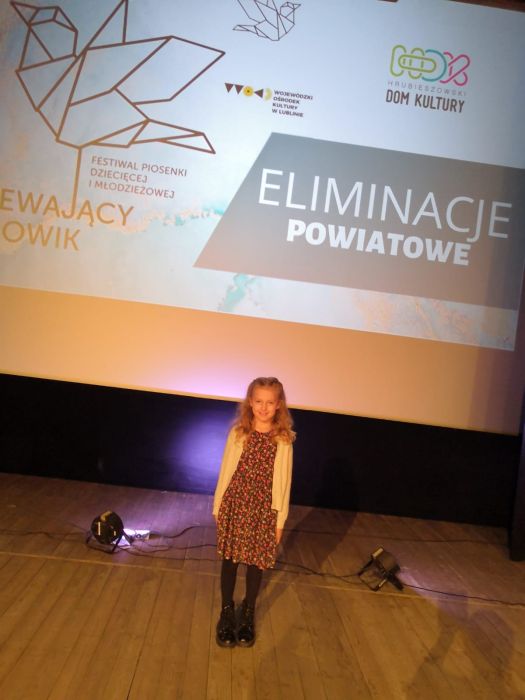 6 kwietnia w Hrubieszowskim Domu Kultury odbyły się eliminacje powiatowe Festiwalu Piosenki Dziecięcej i Młodzieżowej - "Śpiewający Słowik". Naszą szkołę reprezentowały dwie uczennice - zwyciężczynie eliminacji gminnych: Lena Maciejewska z kl. VI i Zuzanna Ciesielczuk z klasy I.