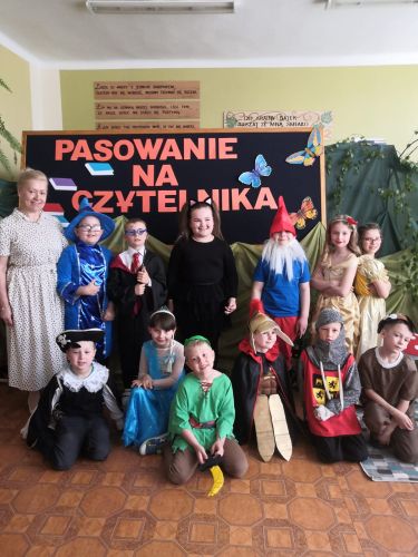 13 maja w klasie pierwszej odbyła się uroczystość Pasowania na Czytelnika. Dzieci przyszły do szkoły poprzebierane za postacie z bajek i baśni. W części artystycznej śpiewały piosenki i recytowały wiersze o książkach i bibliotece. Następnie odbyło się przyrzeczenie i pasowanie na Czytelnika szkolnej biblioteki, którego dokonała pani dyrektor Elżbieta Denys. Dzieci otrzymały pamiątkowe dyplomy, zakładki do książek, kolorowanki i notesy. Każda uczennica i uczeń klasy I mieli też okazję zaprezentować się przed rodzicami, panią dyrektor i nauczycielem biblioteki - panią Zofią Smolej czytając wybrany wiersz. Na zakończenie uroczystości dzieci przeszły z biblioteki do swojej sali lekcyjnej, gdzie mamy przygotowały poczęstunek. Wychowawczyni kl. I pani Teresa Miedziak życzy swoim wychowankom, aby książka na zawsze pozostala Ich wiernym przyjacielem.