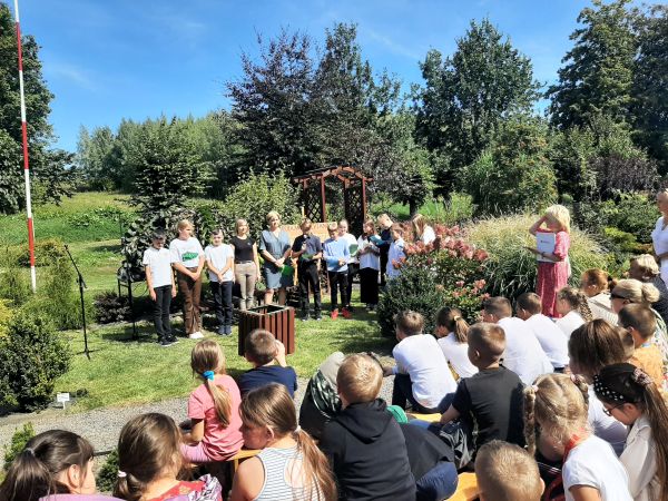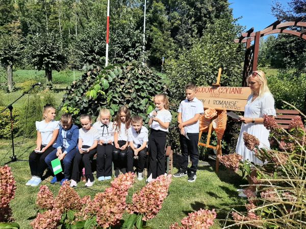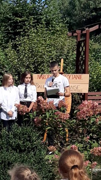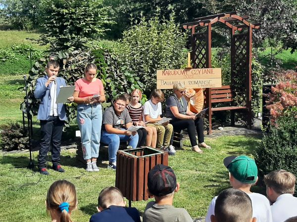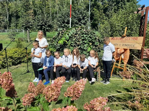 Szkoła Podstawowa w Strzyżowie co roku bierze udział w akcji "Narodowego Czytania". W przepięknej, romantycznej scenerii szkolnego ogrodu botanicznego, społeczność szkolna zebrała się, aby wspólnie czytać utwory naszego wieszcza narodowego, Adama Mickiewicza. Uczniowie klas 4-8 wraz z wychowawcami przygotowali utwory ze zbioru dzieł poety. Uczniowie z ogromną ciekawością zasłuchali się w Mickiewiczowskich Balladach i romansach. Wydarzenie zwieńczone zostało odczytaniem utworu Romantyczność przez panią Dyrektor Elżbietę Denys wraz z nauczycielkami SP w Strzyżowie. Nad przebiegiem tej wyjątkowej lekcji języka polskiego i patriotyzmu czuwały polonistki - panie Wanda Czerwińska i Kamila Tałaj oraz nauczyciel biblioteki, pani Zofia Smolej.