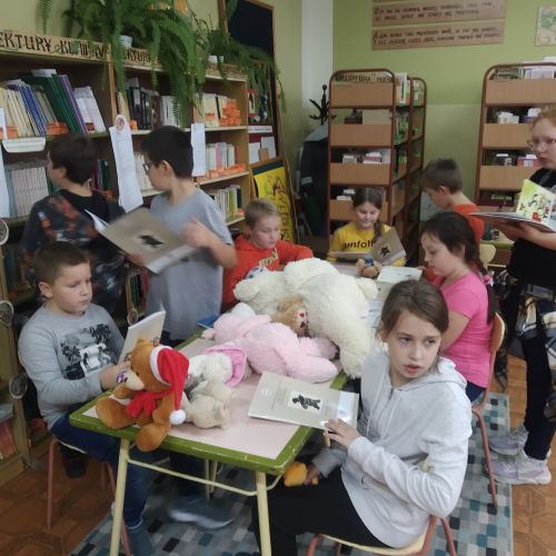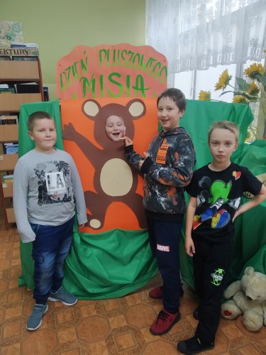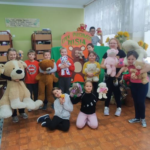 25 października obchodziliśmy Światowy Dzień Pluszowego Misia. Z tej okazji biblioteka szkolna zaprosiła w odwiedziny miłośników czytania i niedźwiadków. Trzecioklasiści przyszli do biblioteki w towarzystwie swoich ukochanych pluszowych przyjaciół. Czekała tam na nich miła niespodzianka - Misiowa Fotobudka, dzięki której każdy mógł chociaż na chwilę wcielić się w rolę pluszowego misia. Uczniowie wypożyczali książki, a z okazji niedźwiedziego święta otrzymali "małe co nieco", czyli misiowe smakołyki Ten dzień był pełen uśmiechu i wspólnej zabawy.