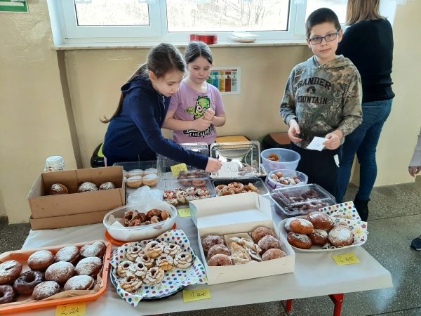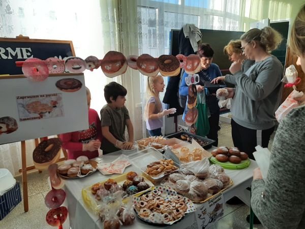 Wieloletnią tradycją w naszej szkole jest kiermasz słodkości organizowany w Tłusty Czwartek. Uczniowie sprzedają pączki, faworki i inne słodkości przygotowane samodzielnie lub z pomocą rodziców. Zebrane w ten sposób pieniądze przeznaczają na cele klasowe. Dzień ten zawsze upływa w radosnej, słodkiej atmosferze.