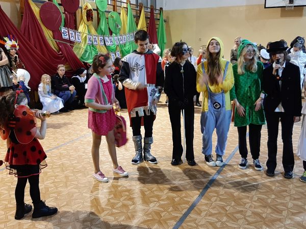To już kolejny bal karnawałowy zorganizowany przez p. Annę Nowosad, tym razem z pomocą p. Moniki Przyczyny. Impreza cieszyła się ogromną popularnością - niemal wszyscy uczestnicy wystąpili w przebraniu. Radosne tańce księżniczek, rycerzy, postaci z bajek i seriali poprzedziły konkurs na najlepsze przebranie. Komisja konkursowa miała nie lada wyzwanie, aby wybrać najlepsze stroje. Wiele osób zajęło miejsca pierwsze i drugie. Wybrano także króla i królową balu - tytuły powędrowały do Dawida Nazara i Oli Główki. Tegoroczny bal zapamiętamy na długo.