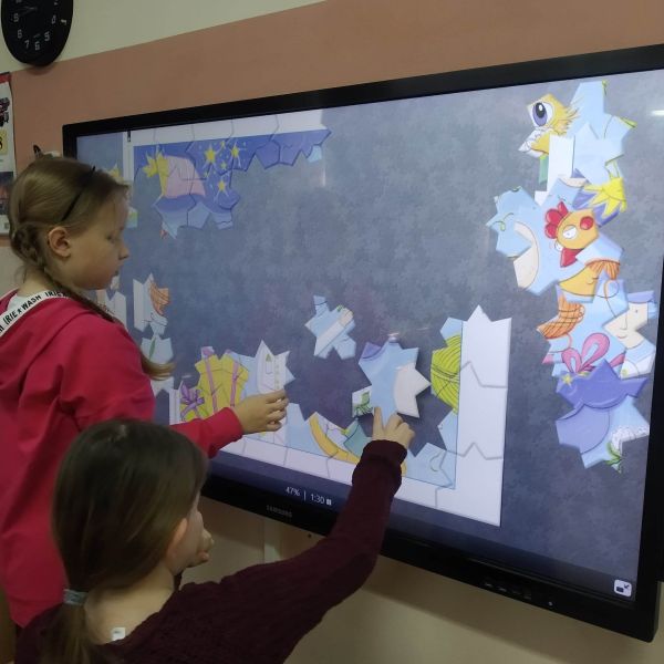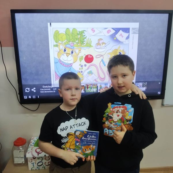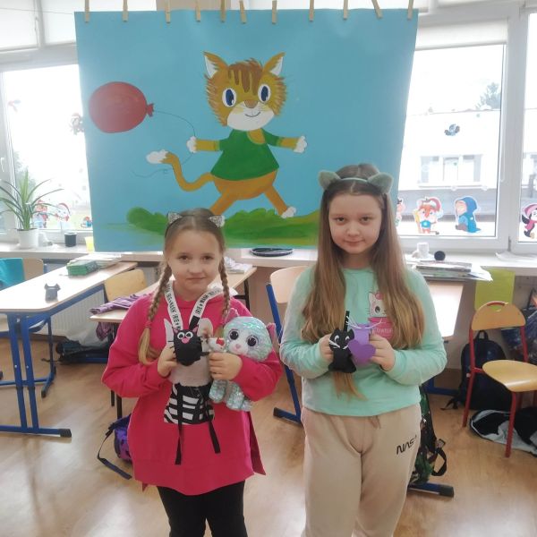 17.02.2023 r. uczniowie klasy III, w ramach Ogólnopolskiego Projektu Edukacyjnego "Z kotem Amadeuszem przez świat wartości i emocji", świętowali Dzień Kota. Trzecioklasiści zastanawiali się jakie są cechy dobrego prezentu, co trzeba wiedzieć o obdarowywanym, by wręczyć mu trafiony prezent, jakie emocje towarzyszą nam gdy otrzymujemy wymarzony prezent oraz gdy otrzymujemy nietrafiony prezent. Wspólnie zastanawialiśmy się również jak grzecznie zareagować na prezent, który nam się nie podoba. Następnie przeczytaliśmy wiersz o Kotku Amadeuszu, zaśpiewaliśmy o nim piosenkę, układaliśmy interaktywne kocie puzzle, złożyliśmy życzenia i wręczyliśmy samodzielnie przygotowane upominki. Każdy z uczniów otrzymał dyplom przyjaciela kotów.