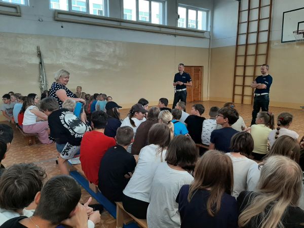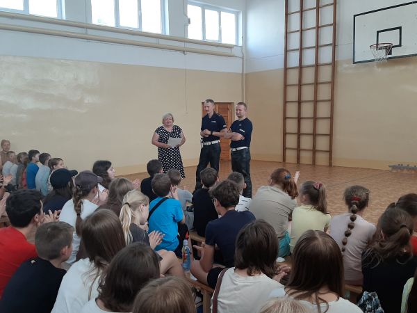 Szkoła Podstawowa w Strzyżowie od wielu lat organizuje projekt "Bezpieczne wakacje nad Bugiem". Celem projektu jest edukacja dzieci i młodzieży w kierunku bezpieczeństwa podczas wypoczynku letniego. W dniach 20-21 czerwca 2023 r., w ramach projektu, funkcjonariusze policji z Komendy Powiatowej Policji w Hrubieszowie zapoznali uczniów z zasadami bezpieczeństwa na drodze oraz regulacjami prawnymi dotyczącymi pojazdów, którymi poruszają się na drodze. Omówili niebezpieczne sytuacje oraz sposoby właściwego reagowania. Strażacy z Ochotniczej Straży Pożarnej w Strzyżowie zademonstrowali proces gaszenia pożaru oraz sprzęt, który wykorzystują na co dzień w swojej pracy. Przedstawiciel Nadleśnictwa Strzelce opowiedział o zasadach wypoczywania na łonie natury, ze szczególnym naciskiem na bezpieczeństwo wypoczywających. Dzieci dowiedziały się jak zachować się w przypadku napotkania dzikiego zwierzęcia lub ugryzienia kleszcza. Dzięki wiedzy zgromadzonej w trakcie projektu uczniowie wiedzą jak uniknąć niebezpiecznych sytuacji w czasie wypoczynku.