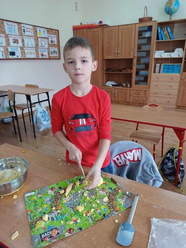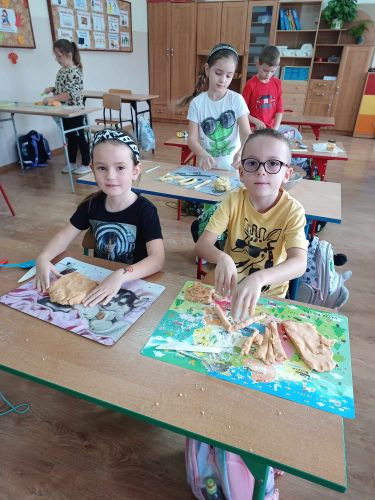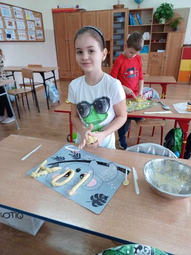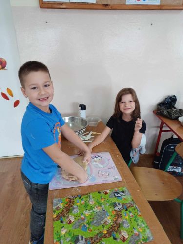 10 października klasa I wykonała drugie zadanie projektowe w ramach projektu międzynarodowego „Literki w akcji”. Uczniowie przynieśli na zajęcia produkty potrzebne do wykonania masy solnej oraz potrzebne narzędzia, takie jak miseczka, łyżeczka, plastikowy nożyk i podkładkę. Uczniowie rozpoczęli od wsypania mąki soli oraz łyżeczki wybranej przyprawy do przygotowanej przez siebie miseczki. Dokładnie wymieszali składniki. Po dolaniu wody, dokładnie ugniatali składniki, dążąc do uzyskania jednolitej, gładkiej i elastycznej masy. Po osiągnięciu właściwej konsystencji, uczniowie przeszli do formowania liter. Wykorzystując przygotowaną masę, tworzyli litery, starając się zachować jak największą dokładność i estetykę. Po zakończeniu prac każdy z uczniów posprzątał swoje stanowisko, a wykonane litery ułożył na przygotowanym stanowisku w klasie. Wykonane litery będą mieć dalsze zastosowanie w procesie edukacyjnym. Posłużą uczniom do zabaw, takich jak rozpoznawanie liter na podstawie kształtu czy segregowanie liter według kolorów. Dzięki temu elementowi zabawy, nauka stanie się bardziej angażująca i atrakcyjna dla uczniów.