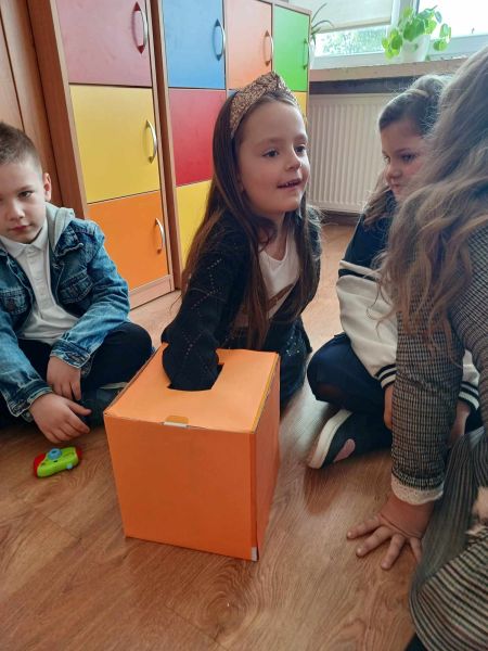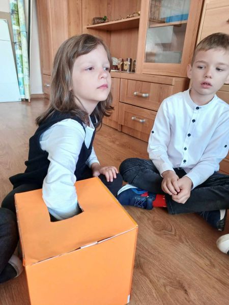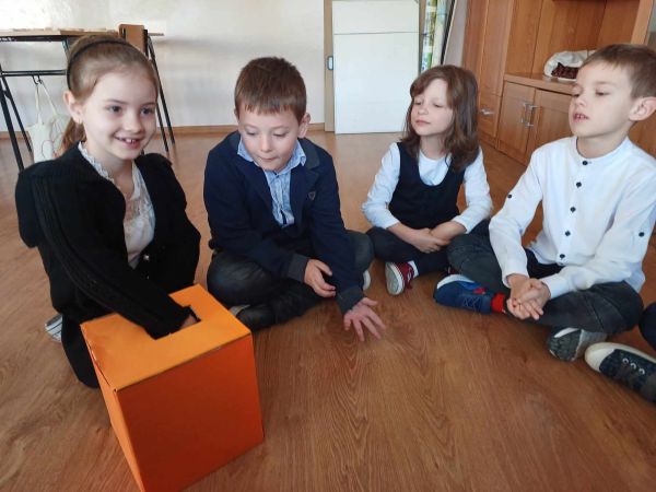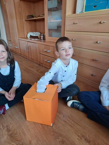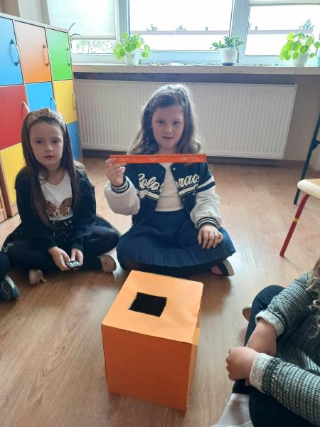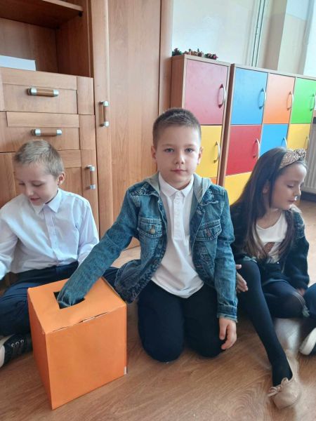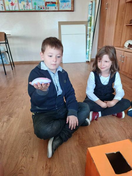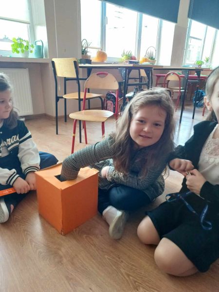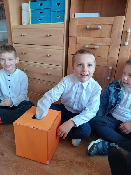 13 października klasa I wykonała trzecie zadanie projektu międzynarodowego "Literki w akcji". Uczniowie przynieśli na zajęcia rzeczy spełniające warunek pomieszczenia w dłoni. Nazwy tych rzeczy musiały rozpoczynać się na poznane litery. W klasie czekało na uczniów pudełko z otworem, stwarzającym możliwość losowania. Pierwszoklasiści wkładali przygotowane przedmioty do tego pudełka, tworząc zasób sensoryczny do wykorzystania. W trakcie realizacji zadania, uczniowie kolejno wybierali przedmioty z pudełka, a następnie, poprzez dotyk, próbowali odgadnąć, co wylosowali. To aktywizowało ich zmysł dotyku oraz zdolność kojarzenia wrażeń z przedmiotami. Kolejnym etapem było wspólne dzielenie nazw wylosowanych przedmiotów na sylaby i głoski. Ta część zadania angażowała zarówno aspekty słuchowe, jak i werbalne uczniów. Wspólne wydzielanie sylab i głosek stworzyło interaktywną przestrzeń do aktywnego uczestnictwa i wymiany wiedzy między uczniami.
