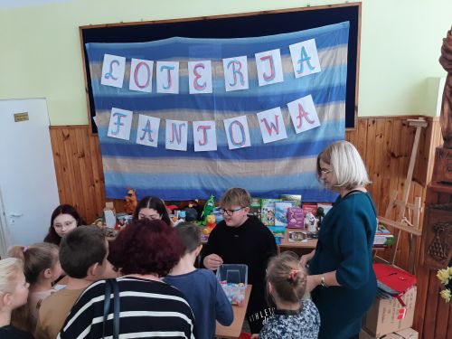 8 grudnia 2023 r., uczniowie klasy VII wraz z wychowawczynią p. Mirosławą Lachowską zorganizowali mikołajkową loterię.