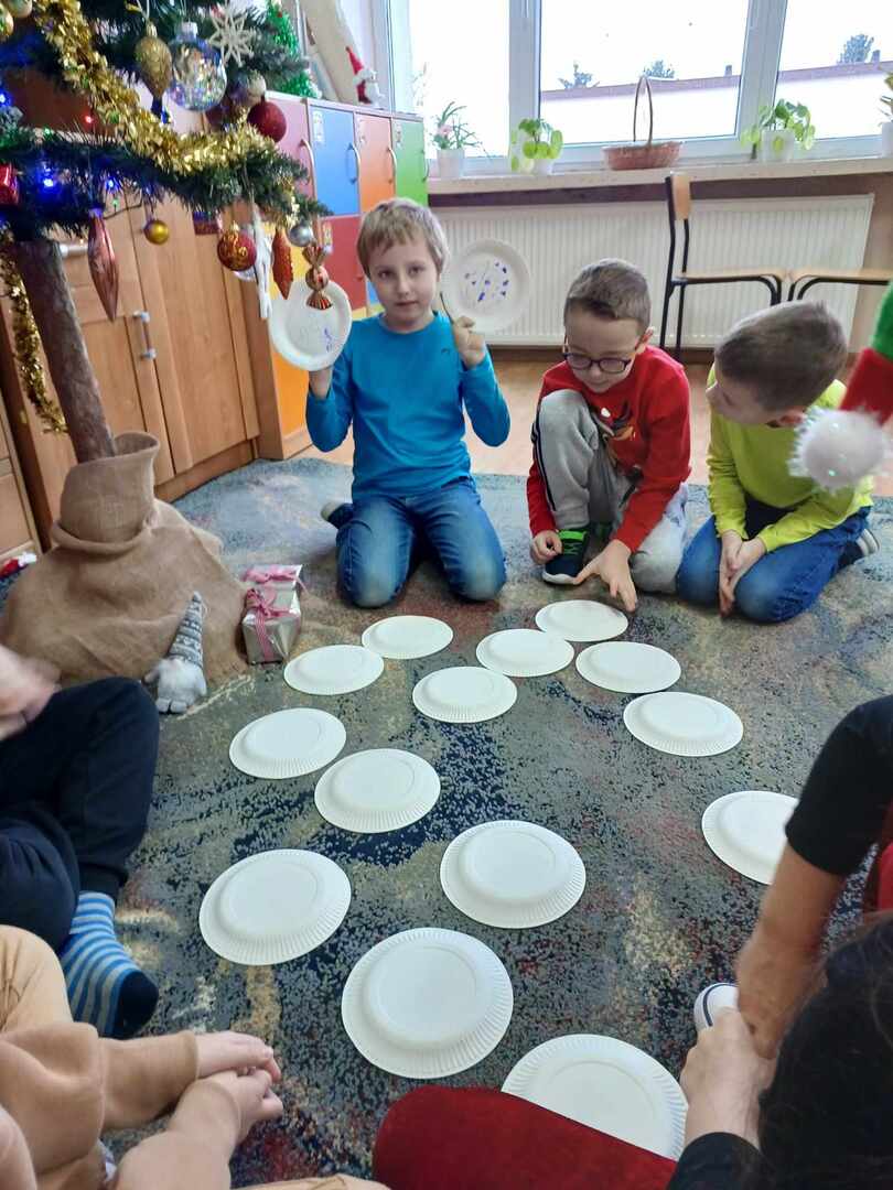 Uczestnicząc w międzynarodowym projekcie "Literki w akcji" uczniowie kl. I wykonali kolejne grudniowe zadania. Pismo Braille'a Uczniowie podczas zajęć poznali podstawowe zasady pisma wypukłego Braille'a oraz dowiedzieli się, jak poszczególne punkty w systemie odpowiadają podanej literze/podanym literom. Korzystając z wytłaczanek po jajkach i kasztanów, indywidualnie tworzyli pracę techniczną. Wykorzystana w zadaniu metoda to metoda pokazu i integracji sensorycznej, a praca odbywała się na poziomie indywidualnym i grupowym. Uczniowie angażowali się w zróżnicowane aktywności, ucząc się innych alternatywnych form komunikacji, rozwijali umiejętności manualne i kreatywność. Gra "Memory" Memory to gra opierająca się na pamiętaniu rozmieszczenia papierowych talerzyków, które są ułożone na podłodze. Głównym celem tej gry było odnalezienie wszystkich par identycznych talerzyków z poznanymi do tej pory literami. Uczestnicy grali w zespołach. Zespół, który odkrył większą liczbę par, został zwycięzcą. Uczniowie zostali podzieleni na dwa zespoły otrzymując parzystą ilość talerzyków papierowych. Każdy zespół musiał przygotować talerzyki, pisząc na nich przydzielone przez nauczyciela litery. Każdą literę reprezentowały dwa talerzyki. Uczniowie ozdabiali swoje talerzyki, starając się, aby pary liter były identyczne. To dodatkowo umożliwiło rozróżnianie par podczas gry. Uczniowie zostali wprowadzeni w zasady gry oraz został wyjaśniony cel gry. Zadaniem uczniów było odnalezienie jak największej liczby par liter, które do siebie pasują. Podkreślono, że każdy ruch oraz zapamiętanie położenia liter mają istotne znaczenie. Grając w tę pełną dynamiki grę, uczniowie doskonalili umiejętność skupienia uwagi, wzmacniali pamięć oraz rozwijali strategiczne myślenie. Podczas tej wspólnej zabawy w zespole, uczniowie utrwalili poznane litery alfabetu. "Sprint literowy" Gra "Sprint literowy" to dynamiczne zadanie, które angażowało uczniów w procesie uczenia się przez ruch. W trakcie tej gry klasa została podzielona na dwa zespoły, a uczestnicy wyruszyli do kartki papieru, by zapisać litery alfabetu. Drużyny zajmowały swoje pozycje po przeciwnych stronach sali, stojąc naprzeciwko tablicy jeden za drugim. Przygotowano zestaw karteczek dla każdego zespołu, a na nich poznane litery alfabetu. Pierwszy biegacz zespołu miał za zadanie ruszyć na sygnał "start", biegnąc do kartki papieru. W trakcie biegu, musiał przejść przez umieszczoną na środku drogi szarfę, co dało element rywalizacji i zabawy. Gdy uczeń dotarł do ławeczki z kartką papieru, zapisał litery odpowiadające wylosowanej wcześniej literze drukowanej. Po zapisaniu litery, uczeń wracał biegnąc do swojego zespołu. Nauczyciel zliczał poprawnie zapisane litery przez uczestników. Każdy poprawny zapis to punkt dla drużyny. Dodatkowo zespół, który pierwszy zakończył zadanie, otrzymał dodatkowy punkt-bonus. Ogłoszono remis Gra łączyła rywalizację, ruch fizyczny i naukę liter. Uczestnicy nie tylko utrwalili litery alfabetu, ale także wzięli udział w energicznej zabawie, sprzyjającej integracji oraz aktywności fizycznej. Rozwijali umiejętności motoryczne i koordynację ruchową w niestandardowy sposób.