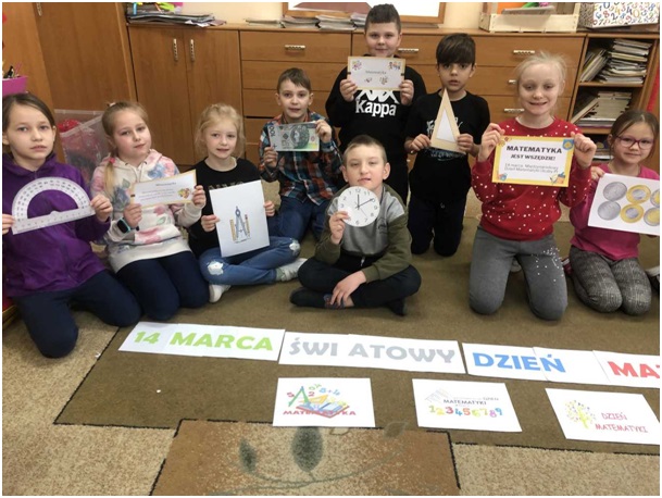 Dnia 14.03. obchodziliśmy Międzynarodowy Dzień Matematyki . Opiekunka SKO pani Anna Nowosad zorganizowała zajęcia tematyczne w klasie II połączone z konkursem matematycznym. Każdy uczeń miał do wykonania różne zadania matematyczne, a następnie z banku zadań SKO losowo wybrane zadanie również było do samodzielnego wykonania. Najlepszymi matematykami okazali się: Hanna Słońska. - I miejsce; II miejsce Jakub Dąbrowski, III miejsce -Aurelia Falęta oraz wyróżnienia Jagoda Modzelewska i Krzysztof Maciejewski. Gratulacje! Po konkursie uczniowie mieli za zadanie ułożyć figury i cyfry. Zajęcia przebiegły w wesołej atmosferze.