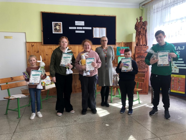 W kategorii klas IV-VIII: II miejsce – Oskar Pałys z kl.VIII i III miejsca – Lena Bajda kl.IV i Zuzanna Bajda z kl.V.