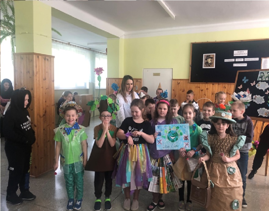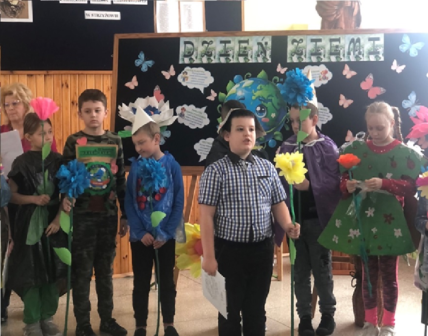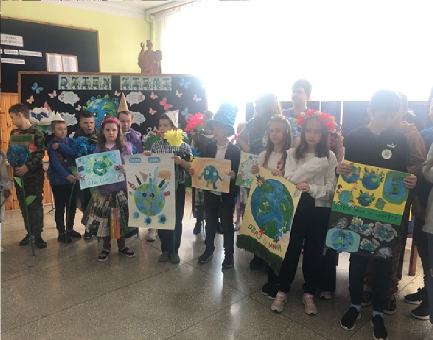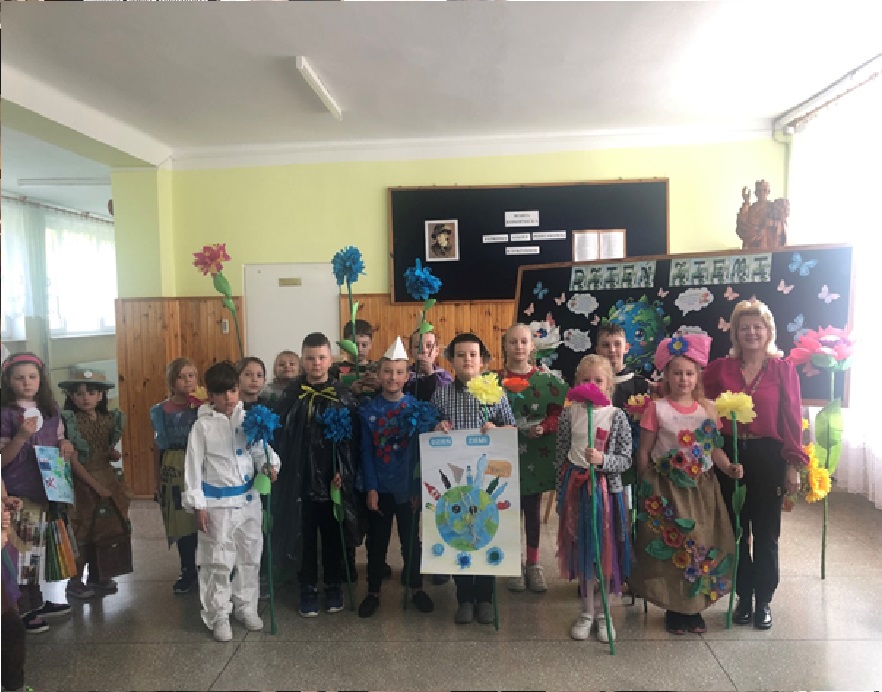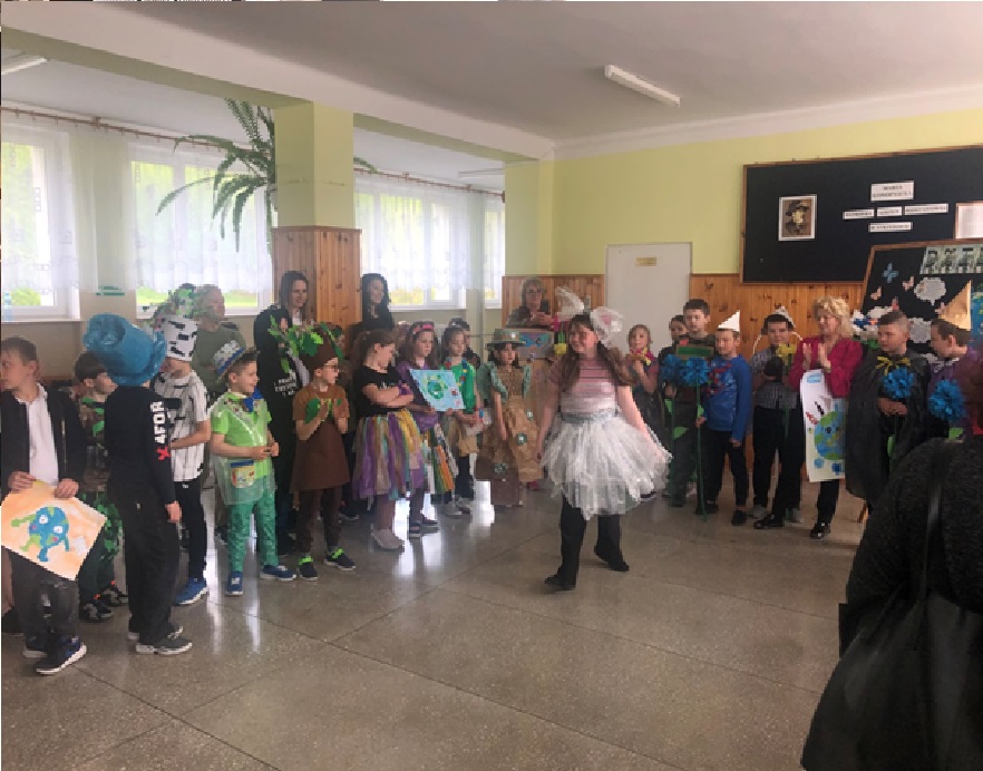22.04.2024 r. w naszej szkole odbył się apel poświęcony Międzynarodowemu Dniu Ziemi. Klasa II oraz VI pod okiem pani Anny Nowosad przygotowała montaż słowno – muzyczny, który miał przybliżyć zmiany zachodzące w przyrodzie i ochronę naszego środowiska. Były wiersze, apel do ludzi i piosenki. Po części artystycznej uczniowie zaprezentowali stroje wykonane z surowców wtórnych. Każda klasa przygotowała również plakaty z okazji Dnia Ziemi. Na koniec organizatorka wręczyła dyplomy ,,Przyjaciela Przyrody" każdej klasie oraz drobne upominki .