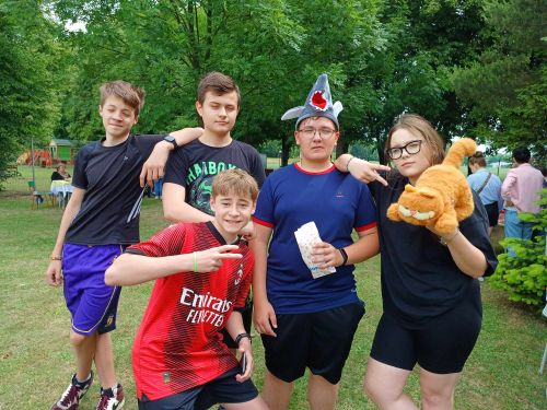 7 czerwca 2024 r. uczniowie, rodzice i pracownicy szkoły spotkali się, aby wspołnie świętować ten dzień. Piknik obfitował w moc atrakcji. Uczestnicy wydarzenia mogli zjeżdżać na dmuchanych zjeżdżalniach, skakać na trampolinie, wspinać się na szczyt wieżyczki wspinaczkowej. Rozegrano także mecz piłki siatkowej - rodzice kontra uczniowie. Rada Samorządu Uczniowskiego przygotowała konkursy sprawnościowe i loterię fantową, w której wygrywał każdy los. Mamy robiły kolorowe warkoczyki i tatuaże. Nie zabrakło również smakołyków - Panie z Biblioteki w Strzyżowie zapewniły watę cukrową i popcorn. Panie ze szkolnej stołówki ugotowały pyszny bigos, a rodzice grillowali kiełbaski. Dzień upłynął w atmosferze radości i beztroskiej zabawy.