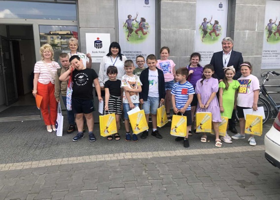 6.06.2024 r. 12 uczniów z klas I-IV udało się wraz z opiekunką SKO p. Anną Nowosad do banku PKO BP w Hrubieszowie. Na początku naszej wizyty powitali nas przedstawiciele banku, w tym pan dyrektor. Następnie uczniowie mogli pobrać numerek i poczekać na swoją kolej do okienka. Pani Irenka – opiekun bankowy SKO pokazała jak działa liczarka pieniędzy i ultrafiolet, który wykrywa fałszywe banknoty. Po krótkiej wizycie przy okienku, gdzie opiekunka wpłaciła pieniądze uczniów udaliśmy się z panią Natalią do sali konferencyjnej, gdzie uczniowie mogli rozwiązać krzyżówkę, a za hasła otrzymywali papierowe złotóweczki. Uczeń Maciej Zgliniecki z klasy II uzyskał 5 monet i dostał nagrodę natomiast Karolina Zgliniecka z kl.IV uzyskała 4 monety, a po 2 monety zdobyli Jakub Dzięgiel z kl. IV i Ula Wielosz z kl. I – ci uczniowie także otrzymali nagrody. Na koniec czekała na wszystkich uczniów niespodzianka- słodki poczęstunek i drobne upominki w torebkach z logo banku oraz wizyta w gabinecie pana dyrektora, gdzie uczniowie stawiali pieczątki na swoich dyplomach. Wycieczka była udana, a dzieci bardzo zadowolone.