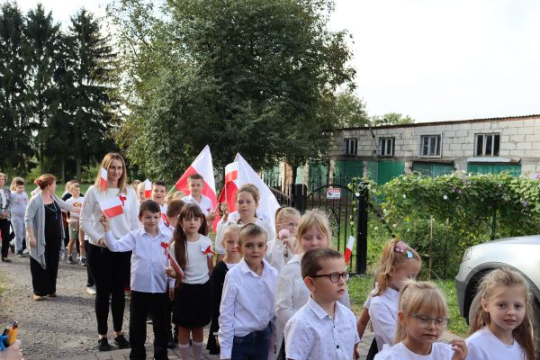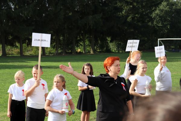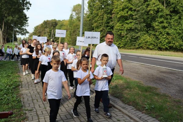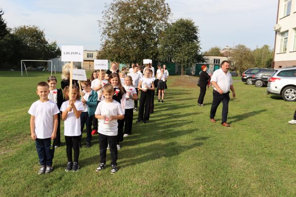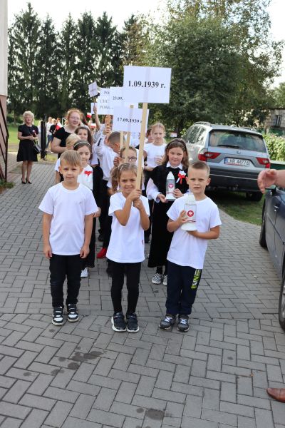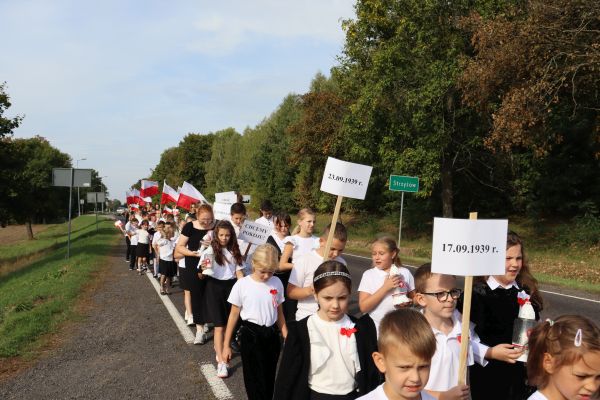 85. rocznicę agresji sowieckiej na Polskę szkoła uczciła patriotycznym marszobiegiem ku chwale 13 żołnierzy poległych w obronie naszych terenów. Dyrektor SP w Strzyżowie, Pani Agnieszka Harpeniuk przybliżyła zebranym wydarzenia, które miały miejsce w 1939 roku na terenie naszej gminy i oddała hołd odwadze i poświęceniu żołnierzy walczących o wolną Polskę. Następnie delegacje złożone z nauczycieli, rodziców i uczniów złożyły kwiaty i uczciły pamięć bohaterów minutą ciszy.
