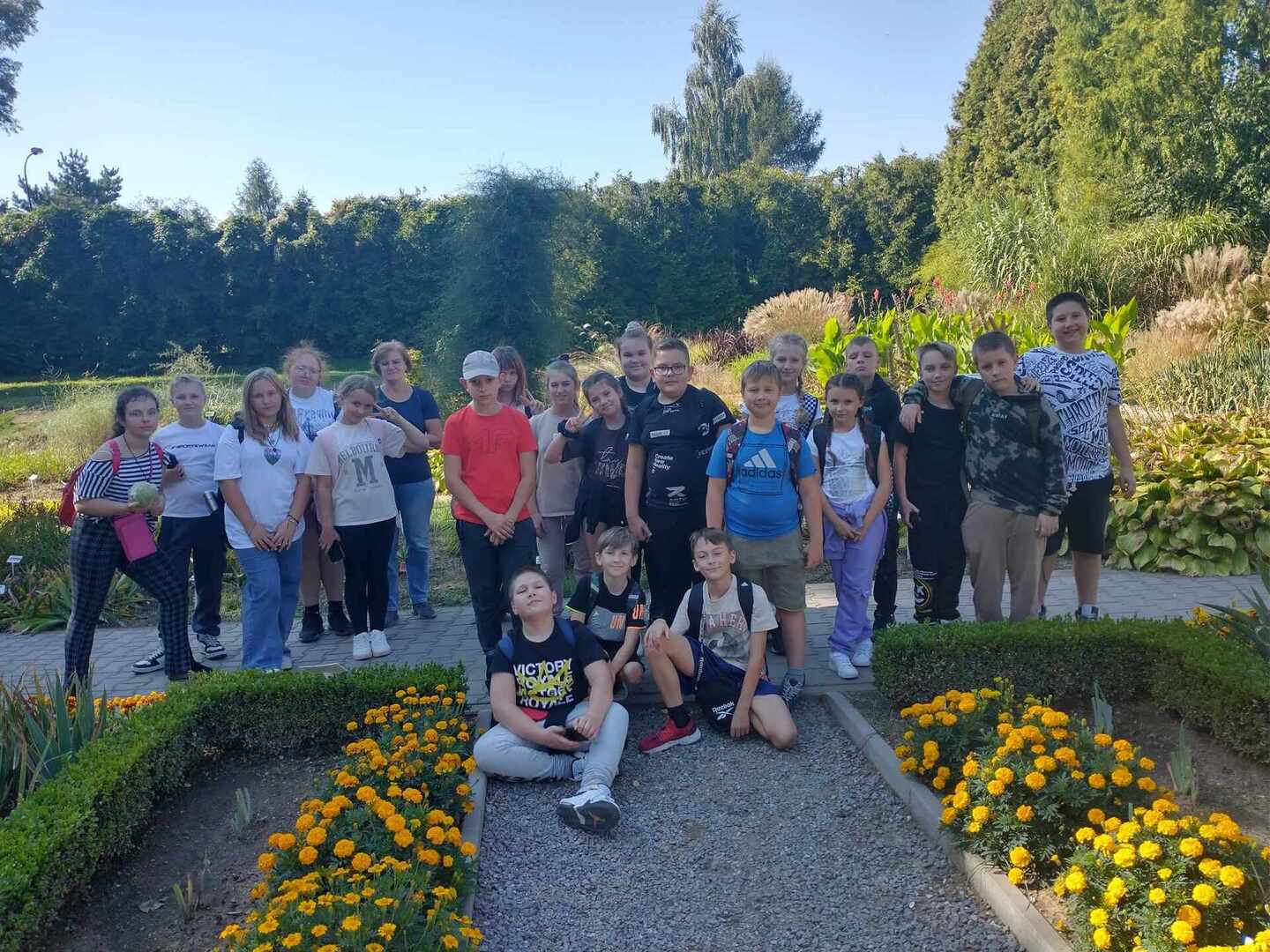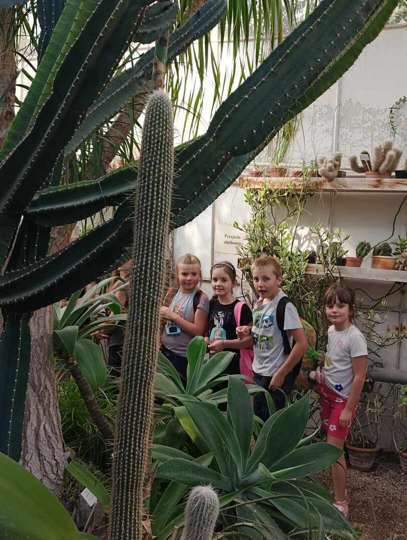 Następnie udaliśmy się do Ogrodu Botanicznego UMCS. To zielona oaza ciszy i spokoju w dolinie rzeki Czechówki. Dowiedzieliśmy się, że znajduje się tutaj 6,5 tysiąca gatunków i odmian roślin pochodzących ze wszystkich stron świata. W ogrodzie urzekły nas nie tylko wyjątkowe kompozycje roślin, tajemnicze ścieżki, głębokie wąwozy, śpiew ptaków i szum strumyka, ale również wielki staw porośnięty roślinami wodnymi ( grążele, lilie wodne, pałki wodne). Po ogrodzie oprowadzali nas pani i pan przewodnik. W interesujący sposób opowiadali o roślinach, które kolejno oglądaliśmy. Podziwialiśmy okazy drzew i krzewów. Dzieci zwróciły szczególną uwagę na kasztanowca z jadalnymi kasztanami. Każdy z uczniów chciał znaleźć w trawie owoc tego ciekawego drzewa. Następnie przeszliśmy do ogródków warzywnych, gdzie podziwialiśmy różne odmiany dyni, ogórków i pomidorów. Widzieliśmy też marchew, fasolę, kapustę, brukselkę, szpinak i wiele innych warzyw. Przeszliśmy również obok kolekcji ziół, gdzie można było poczuć ich aromatyczny zapach. Duże zainteresowanie wzbudziło oglądanie roślin egzotycznych w szklarniach, między innymi dojrzałych cytrusów, palm i kaktusów.