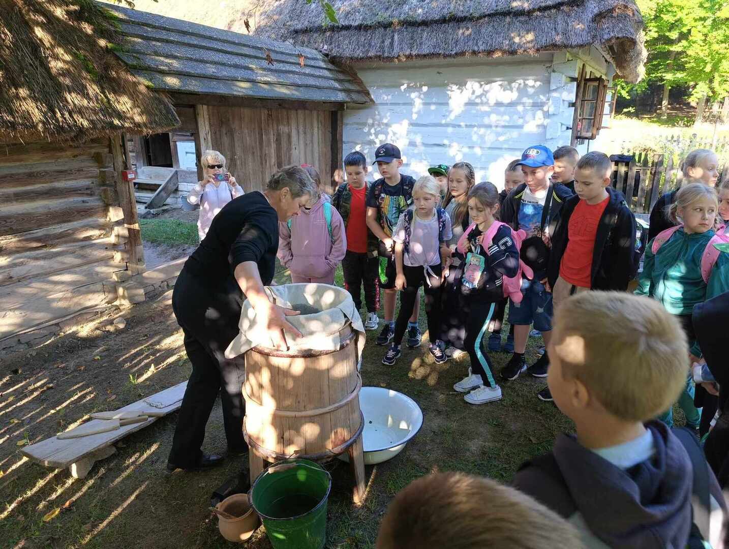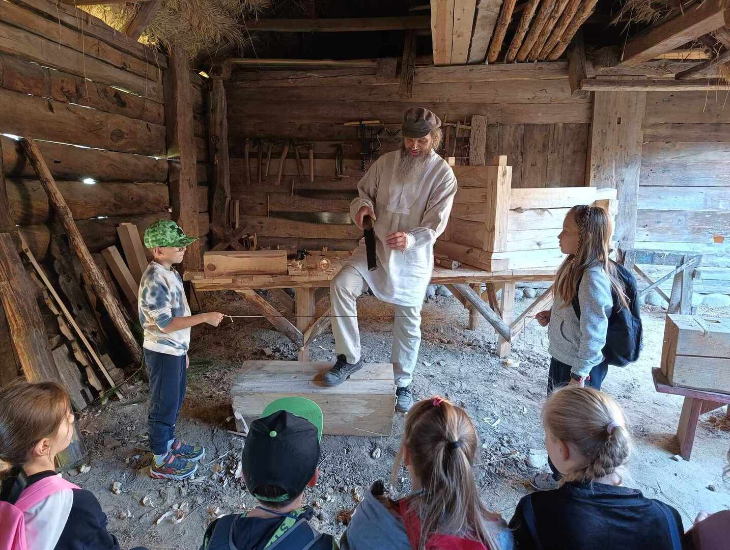 Na specjalnie przygotowanych stanowiskach, zaprezentowane zostały dawne zajęcia, z wykorzystaniem tradycyjnych narzędzi i technologii. Dzieci przy udziale zaproszonych wykonawców z obszaru Lubelszczyzny (głównie Roztocza i południowego Podlasia) oraz pracowników Muzeum, wzięły udział w spotkaniu z dziedzictwem kulturowym regionu, uczestnicząc w warsztatach edukacyjnych "Ginące zawody”- sitarstwo biłgorajskie, łubiarstwo, pranie z zastosowaniem ługu, ciesielstwo, garncarstwo urzędowskie. Miały możliwość przenieść się w czasie i zobaczyć, jak wyglądało życie na wsi w dawnej przeszłości. Podczas spaceru podziwiały autentyczne, odrestaurowane chaty kryte strzechą, stary młyn, karczmę, dawne miasteczko, dworki. Poznały pracę łubiarza, sitarza, cieśli, garncarza, oraz praczki. Same mogły spróbować, jak dawniej prano na tarze, wyrabiano garnki gliniane na kole garncarskim, strugano łuby, a wcale nie była to lekka praca.