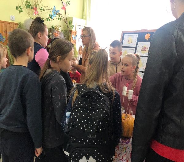 25 października 2024 r. opiekunka SKO Anna Nowosad wraz z rodzicami zorganizowała kiermasz galaretek, lizaczków, pianek - duszków, babeczek i innych słodkości. Uczniowie klasy III jako mali przedsiębiorcy sprzedawali zgromadzone produkty. Zachęcali do kupowania zarówno dzieci jak i nauczycieli oraz personel szkoły. Za sprzedaż uzyskali 320 zł. O tę kwotę wzbogaci się kasa SKO. Brawo uczniowie i rodzice.