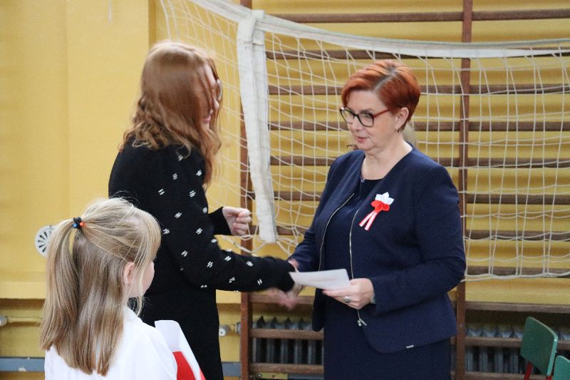 Po przedstawieniu głos zabrała Pani Dyrektor Agnieszka Harpeniuk. Podkreśliła, jak ważna jest wolność i jak potrafi być nietrwała. Na koniec podziękowała organizatorom uroczystości i uczniom występującym w akademii. Apel przygotowały kl. I i kl. VI z wychowawcami p. Barbarą Klamer i p. Marią Mielniczuk oraz p. Barbarą Wojtiuk, p. Zofią Smolej.