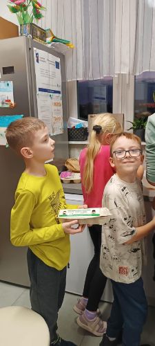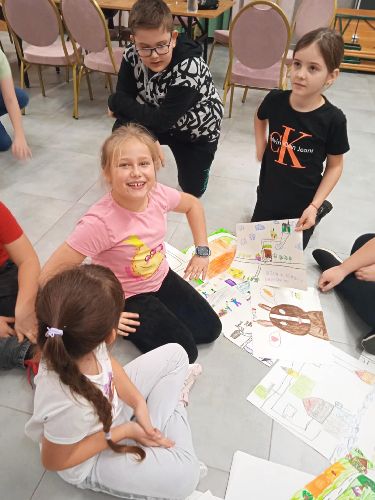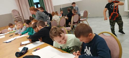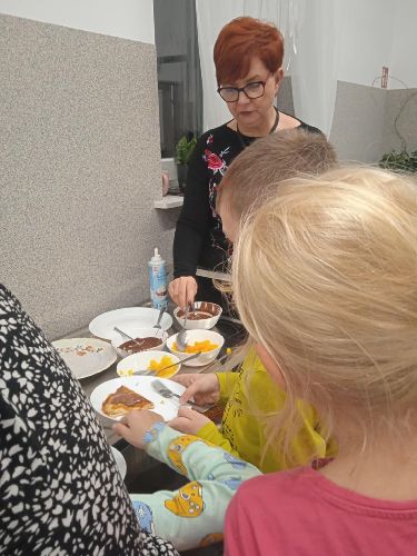 15.11 w Świetlicy Wiejskiej w Rogalinie odbyło się kolejne spotkanie zorganizowane w ramach innowacji "Odkrywamy świat". Rozpoczęliśmy od rajdu pieszego, podczas którego wytyczyliśmy trasę i dzieciaki same sporządzały plany. Posłużyły one potem do stworzenia kolorowych map. Panie w świetlicy przywitały nas pysznymi kanapkami i kompotem, co po długiej drodze przyjęliśmy z ogromną radością. Po krótkim odpoczynku zabraliśmy się do rysowania mapek i dzieci okazały się świetnymi obserwatorami..... może kiedyś ktoś zostanie kartografem. Po pracy mieliśmy możliwość wziąć udział w przygotowaniu gofrów i naleśników. Piekliśmy nawet muffiny. Dzieciaki odkryły, że kiedy przygotowuje się wszystko własnoręcznie to jakoś lepiej smakuje. Kolejna część spotkania upłynęła na tworzeniu kartek świątecznych. Dolożyliśmy tym samym swoją cegiełkę do akcji "Serce za odwagę". Ostatni punkt naszej przygody to tańce i śpiewy. Wyszaleliśmy się na wszystkie czasy. Podczas naszego spotkania odwiedziła nas również nasza Pani Dyrektor Agnieszka Harpeniuk, co zostało przyjęte dużym aplauzem. Dziękujemy pięknie pani Kasi i Natalii za możliwość spędzenia piątkowego popołudnia i wieczoru w tak kreatywny i ciekawy sposób a słodkości "palce lizać".