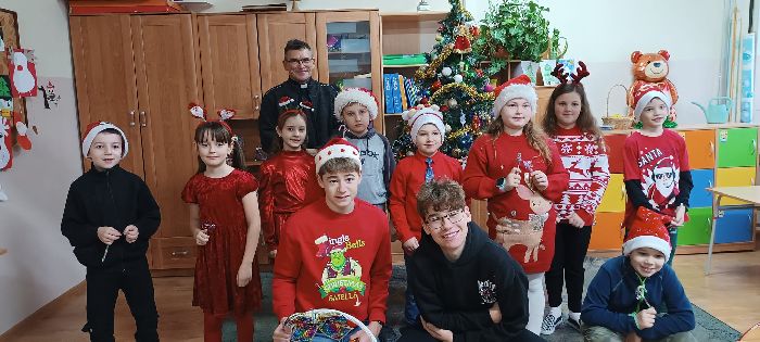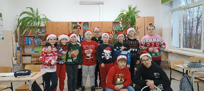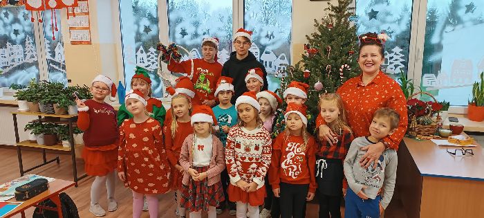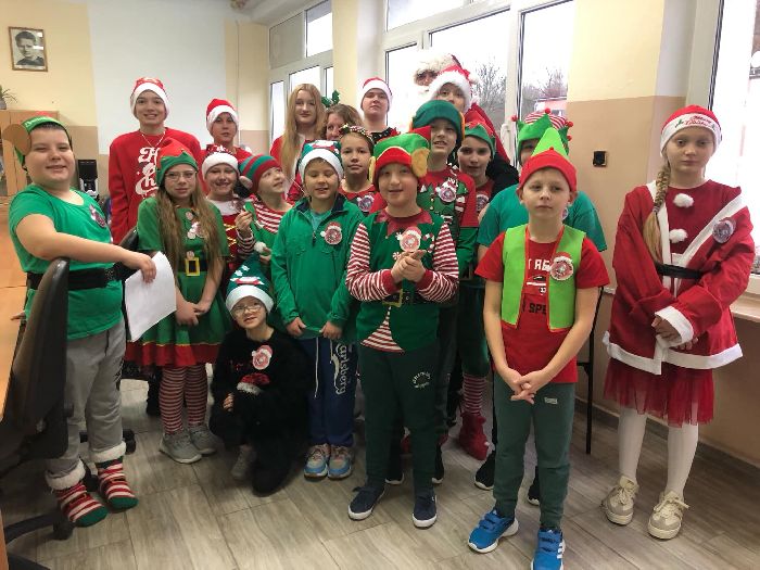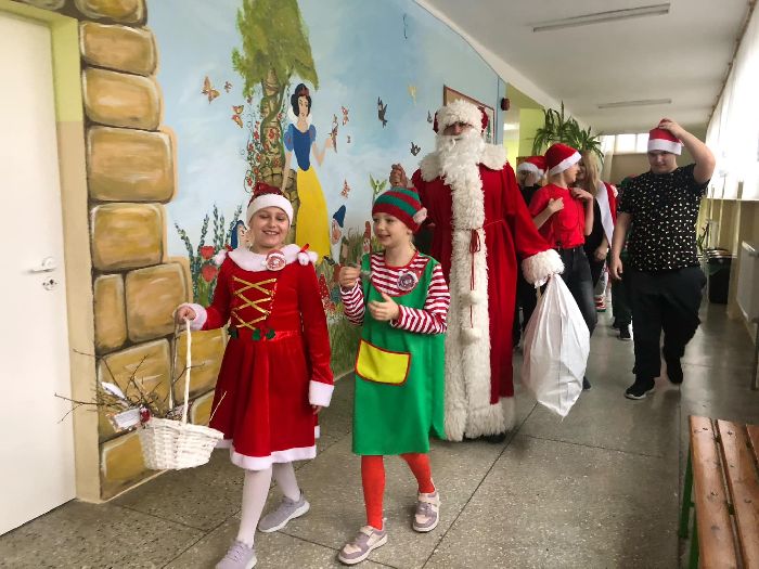 W tym roku ekipę Świętego Mikołaja wsparły klasy dyżurujące - III i VII wraz z wychowawczyniami. Wesoły korowód z prezentami odwiedził każdy zakątek naszej szkoły wręczając mikołajkowe paczki i rózgi.