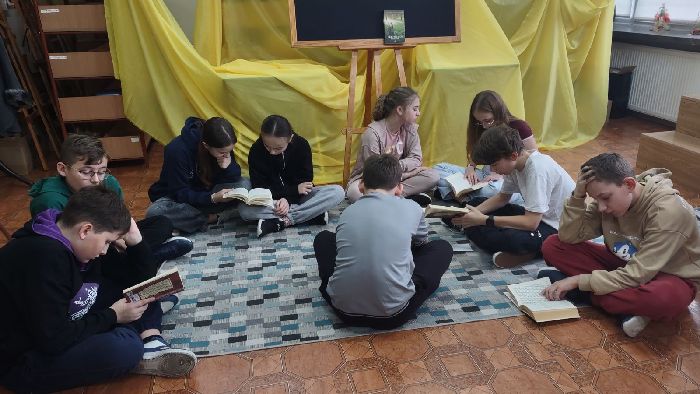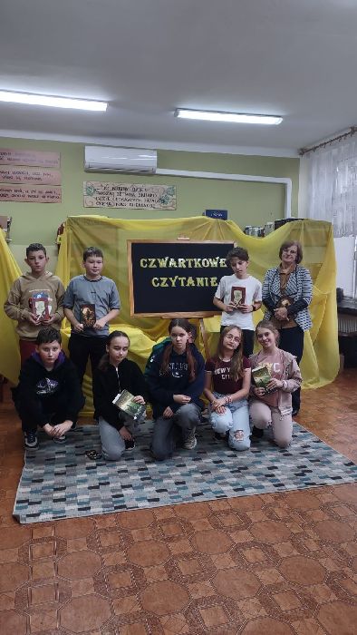 Uczniowie klasy VI w bibliotece szkolnej w ramach „Czwartkowego czytania” wspólnie przeczytali fragmenty powieści J.R.R. Tolkiena „Hobbit, czyli tam i z powrotem”. W miłej atmosferze, kontynuując „czytanie na dywanie” uczniowie poznawali niezwykłe przygody tytułowego Hobbita i jego przyjaciół, rozwijając swoje zainteresowania i pasje czytelnicze.