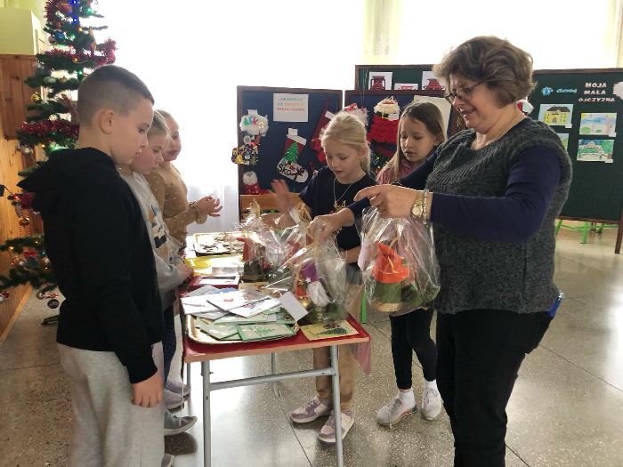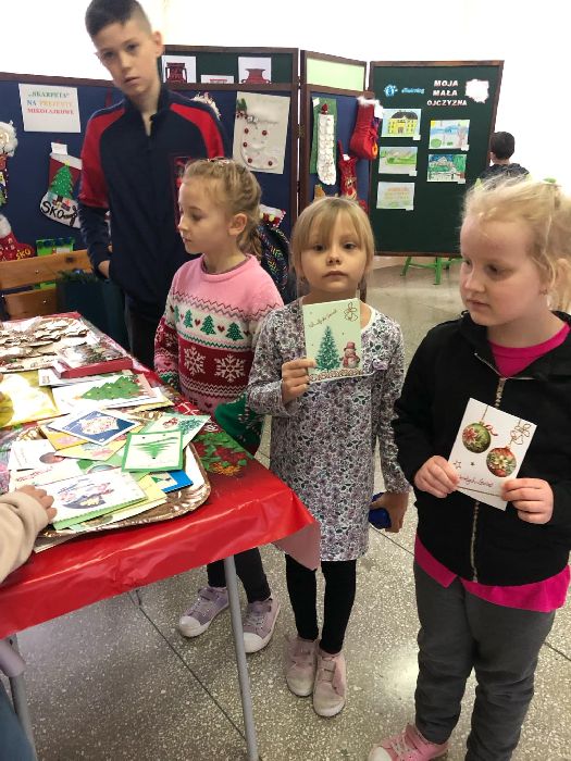 12 grudnia klasa III wraz z wychowawczynią, panią Anną Nowosad zorganizowała kiermasz kartek i ozdób świątecznych. Społeczność szkolna miała okazję zakupić ręcznie wykonane kartki z życzeniami, które można wysłać do rodziny i przyjaciół oraz ozdoby choinkowe do samodzielnego wykonania.