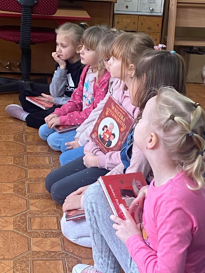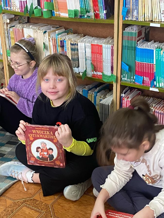 3 stycznia, w ramach programu czytelniczego uczniowie klasy I otrzymali książkę ,,Wnuczka antykwariusza” Justyny Bednarek. Akcja ma zachęcić rodziców do czytania dzieciom. Pani Zosia przeczytała dzieciom fragment książki i opowiedziała o pracy antykwariusza.