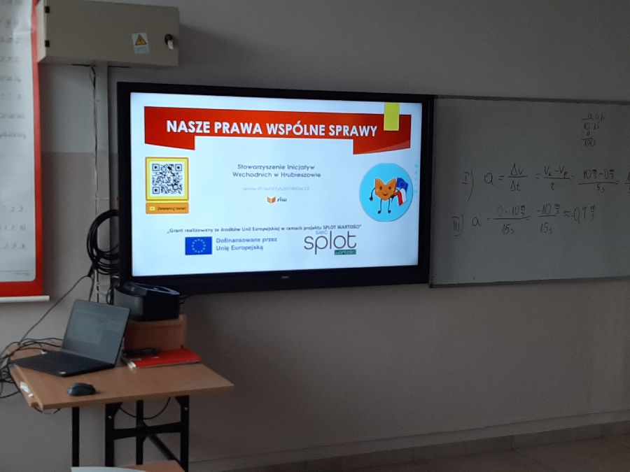 21 stycznia 2025 roku uczniowie klas VI, VII i VIII wzięli udział w zajęciach z projektu "Nasze prawa - wspólne sprawy" Stowarzyszenia Inicjatyw Wschodnich w Hrubieszowie. Projekt ma na celu przekazanie uczniom informacji na temat podstawowych praw dzieci i młodzieży, ochrony przzed cyberprzemocą oraz zagadnień zwiąanych z finansami osobistymi - podstawową wiedzą o podatkach, dochodach i wydatkach. Uczniowie aktywnie uczestniczyli w tej niezwykłej lekcji.