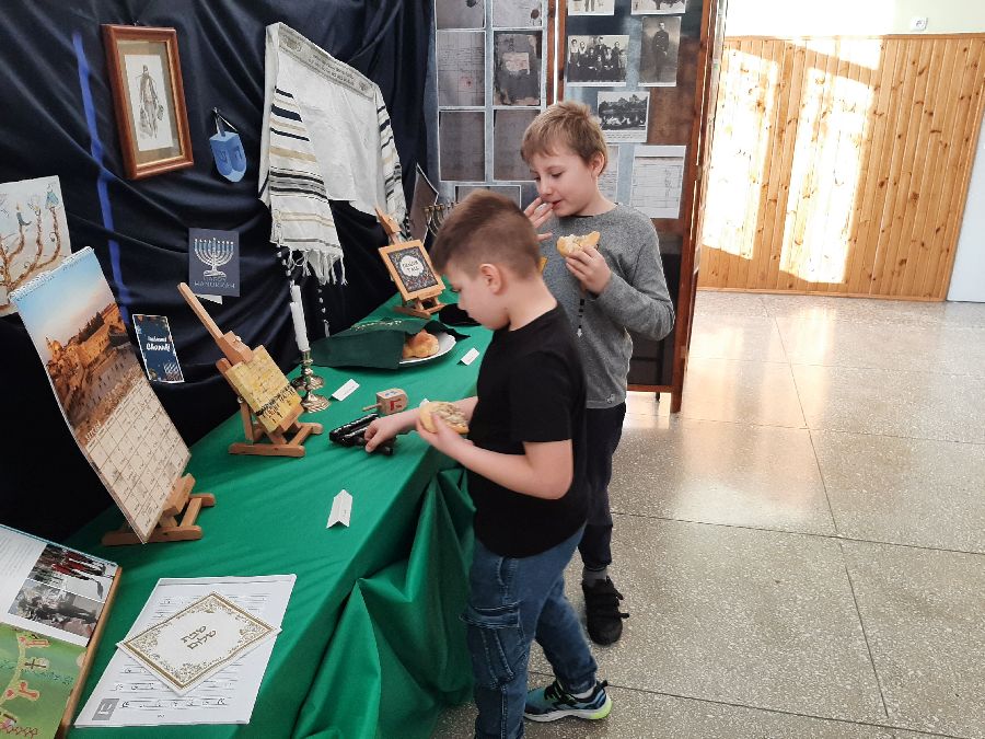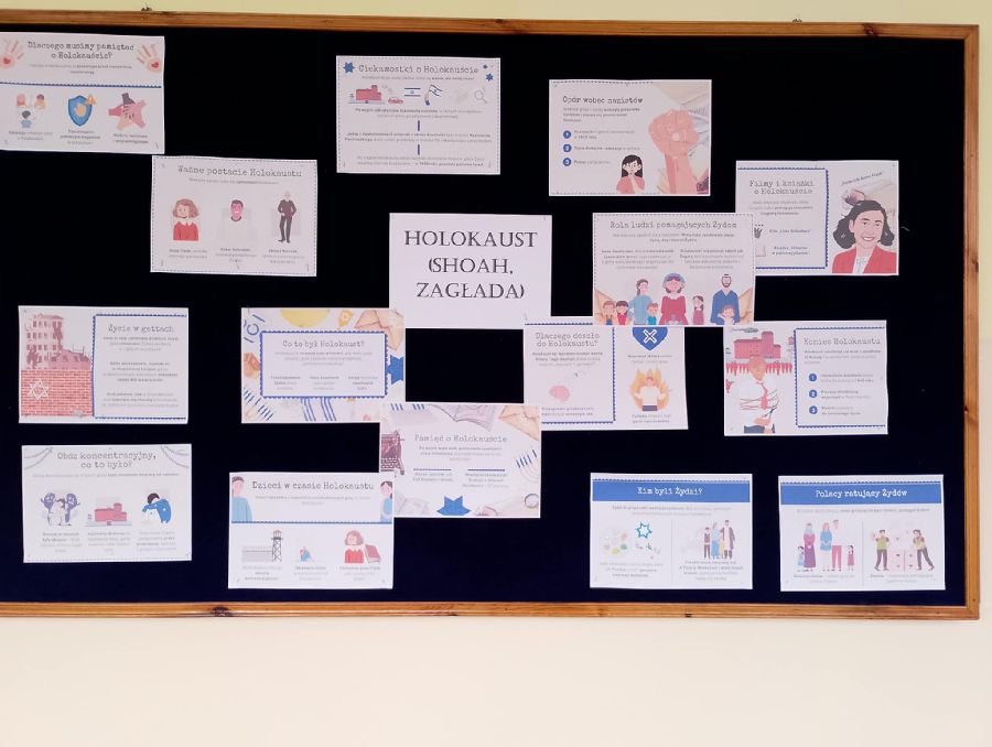 80. rocznica wyzwolenia niemieckiego nazistowskiego obozu koncentracyjnego Auschwitz-Birkenau stała się impulsem do włączenia się naszej szkoły w VII obchody Międzynarodowego Dnia Pamięci o Ofiarach Holokaustu na Lubelszczyźnie organizowane przez Urząd Marszałkowski w Lublinie. Uczniowie kl. 7-8 przygotowali prezentację multimedialną oraz zapoznali się z „Dziennikiem Helgii Weiss”. Na II piętrze przygotowano gazetkę tematyczną, a na pierwszym wystawę przybliżającą kulturę żydowską. Mamy uczniów z kl. 2 upiekły cebularze - tradycyjne danie kuchni żydowskiej. Wszystko po to, aby uczyć pamięci o tych, których już nie ma.