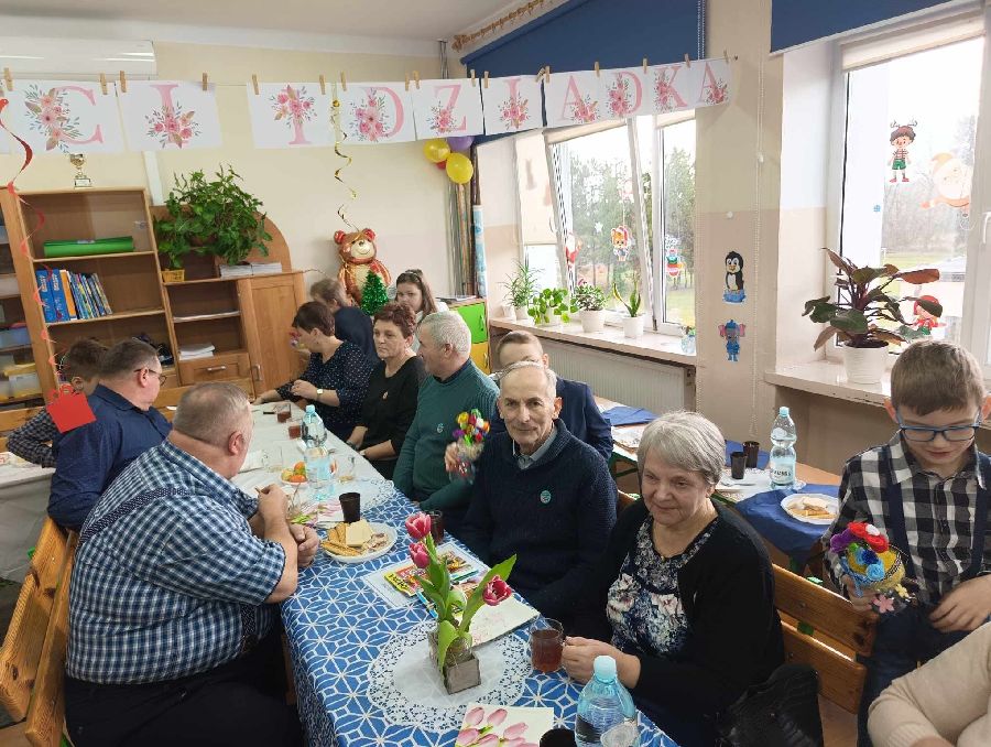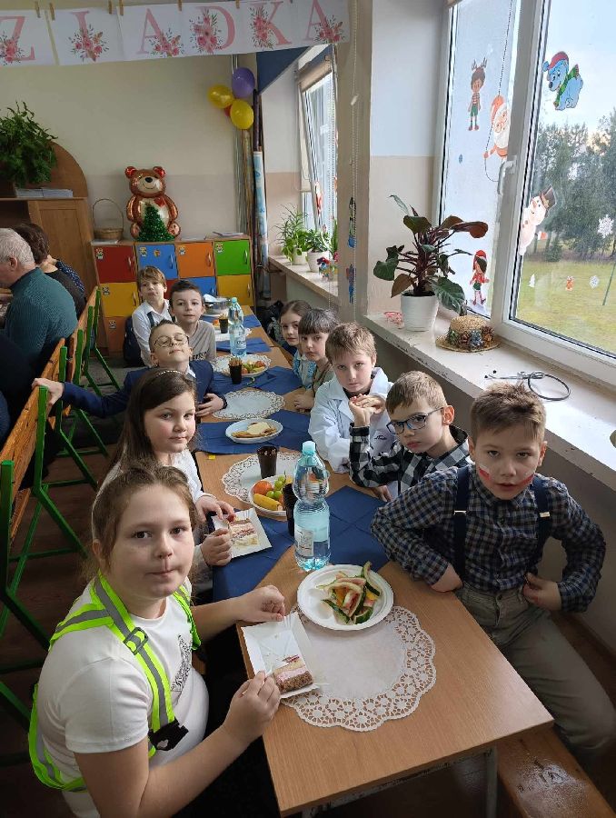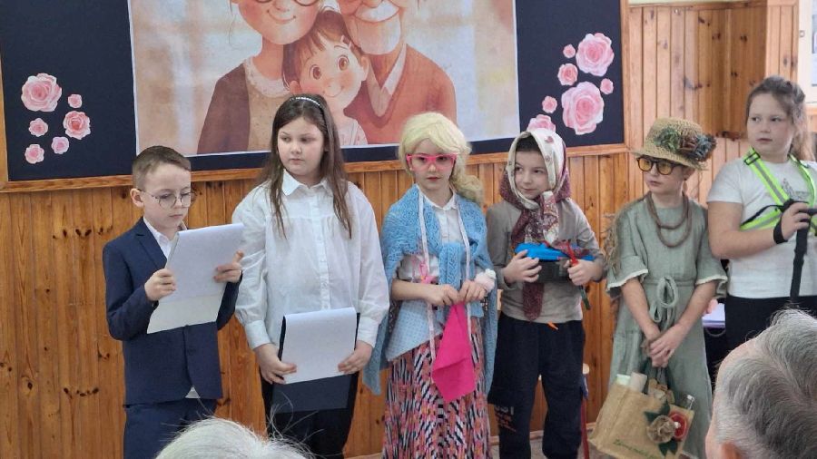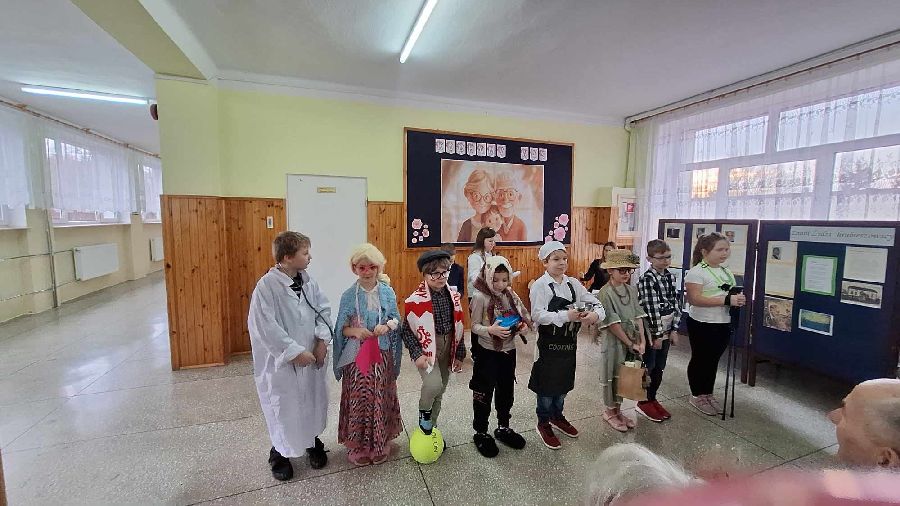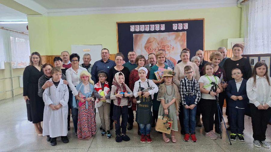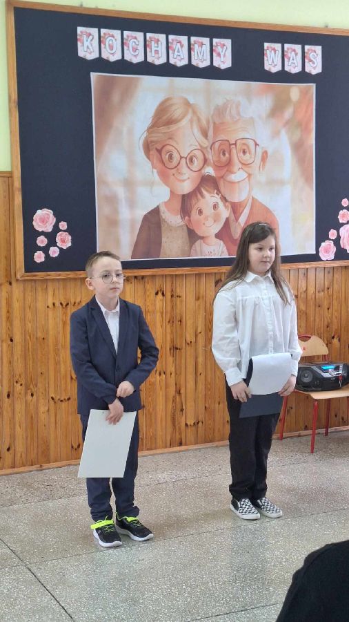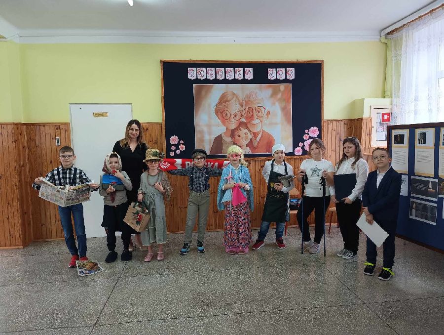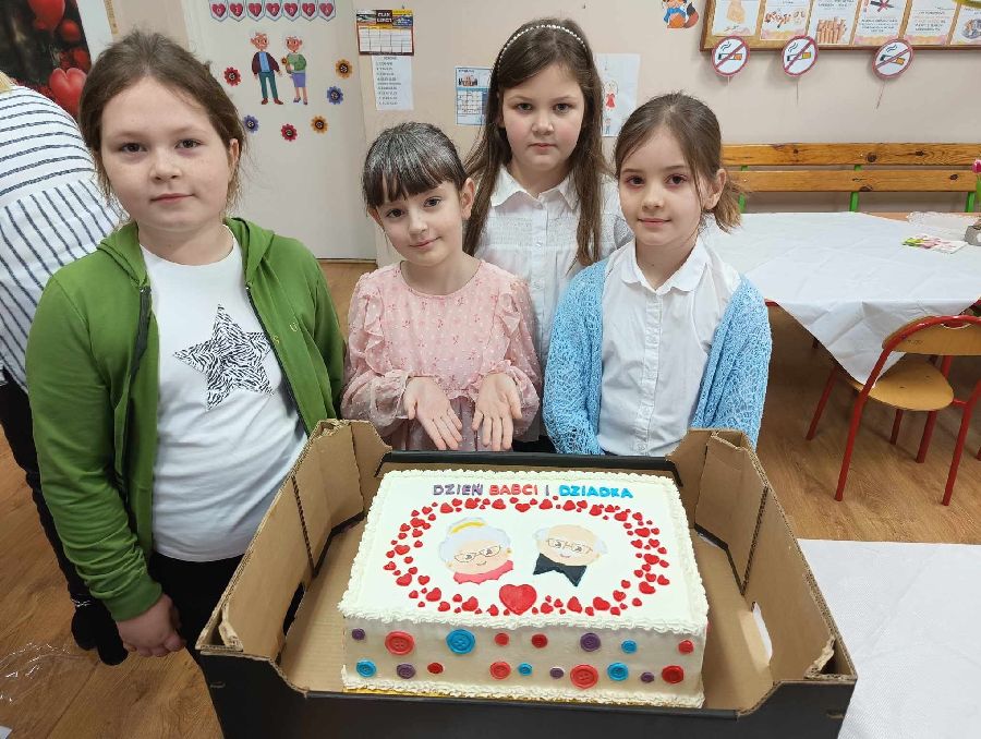 29 stycznia 2025 r. w naszej szkole został zorganizowany Dzień Babci i Dziadka. Już od samego rana uczniowie kl. II czekali na przyjście najważniejszych gości. Zaproszeni goście zjawili się licznie, by wziąć udział w obchodach tego święta. Uczniowie przygotowali „Babciowy i dziadkowy (zupełnie odlotowy) pokaz mody”. Każdy strój miał w sobie coś niezwykłego i wyjątkowego, a każde dziecko zostało nagrodzone brawami i okrzykami zachwytu. Wszystkim Seniorom złożono gorące życzenia, po czym wnuczęta niecierpliwie pośpieszyły z upominkami dla swoich bliskich. Po części artystycznej dzieci zaprosily wyjątkowych gości do swojej klasy, gdzie czekała na nich słodka niespodzianka - wielki tort. Miłym zakończeniem tego dnia była wspólna sesja zdjęciowa wnucząt ze swoimi Dziadkami. Wywołane fotografie są bezcenną pamiątką, która będzie przypominać o tych pięknych chwilach przez wiele lat. Kochanym Babciom i drogim Dziadkom jeszcze raz życzymy samych pięknych chwil w życiu i tego, aby zawsze byli dumni ze swoich wnuków tak jak w tym dniu.