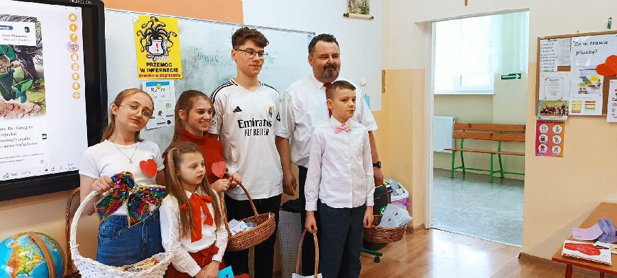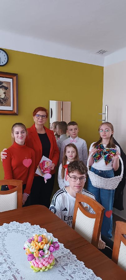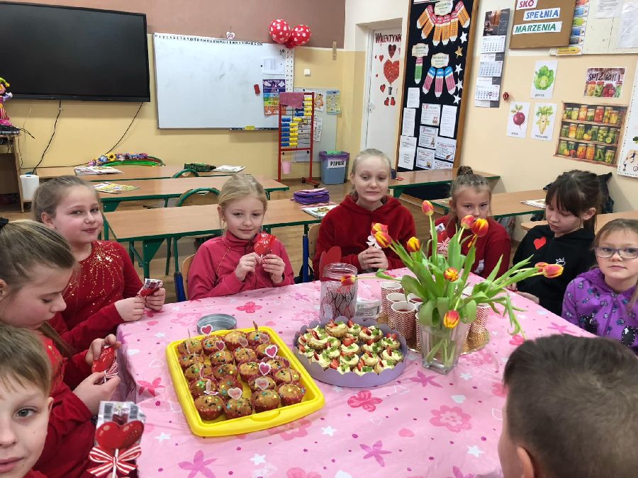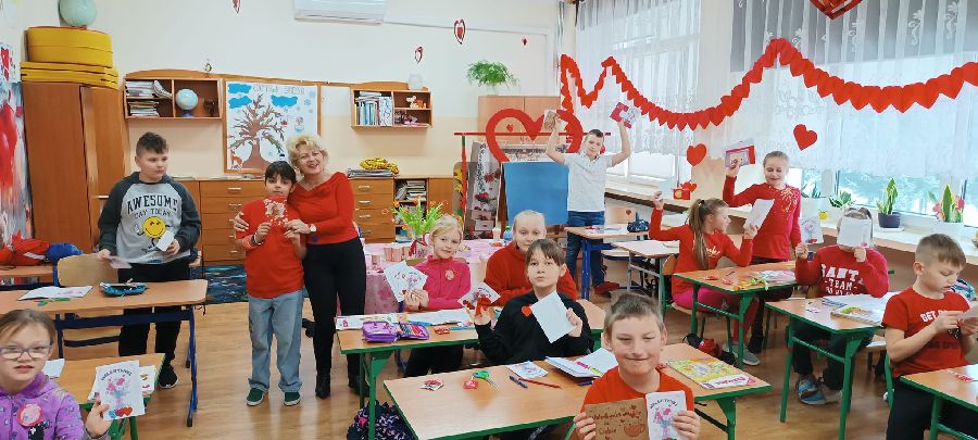 Dzień świętego Walentego, popularnie zwany Walentynkami, wpisał się już na stałe w harmonogram naszych szkolnych imprez i uroczystości. Co roku staramy się, aby ten dzień był wyjątkowy. Nie traktujemy go w kategoriach typowego Święta Zakochanych, ale przede wszystkim jako okazję do okazania sobie serdeczności, życzliwości, ciepła, podjęcia rozważań o miłości i jej sensie. Z inicjatywy Samorządu Uczniowskiego i opiekunów tradycyjnie zorganizowano „pocztę walentynkową”. Wszyscy, którzy chcieli przekazać życzenia swoim sympatiom, wrzucali kartki walentynkowe do specjalnie przygotowanych pudełek oraz przekazywali upominki. Oddelegowani uczniowie z dyżurujących klasy IV i I, członkowie samorządu wraz z panem Pawłem Augustynkiem zmienili się w listonoszy i roznieśli kartki walentynkowe po klasach, które wywoływały uśmiech na twarzach obdarowanych. Nie zabrakło wyrazów sympatii pod adresem Dyrekcji Szkoły, nauczycieli i wychowawców. Atmosferę tego dnia umilały piosenki o miłości puszczane podczas przerw na korytarzu. Niepowtarzalna atmosfera szkolnych walentynek pozostanie z pewnością na długo w pamięci wszystkich uczniów i nauczycieli.