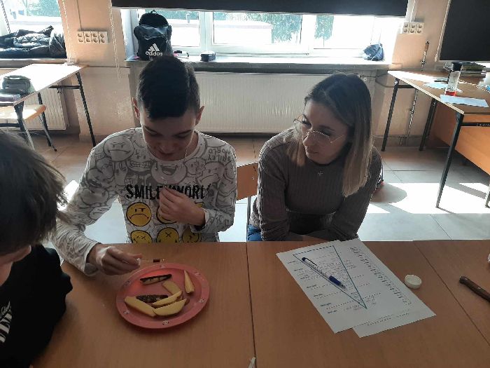 W ramach programu "Trzymaj formę" oraz z okazji Światowego Dnia Wody przypadającego 22 marca, pani Adrianna Karpiuk przeprowadziła zajęcia na temat roli, jaką woda pełni w środowisku naturalnym, w przemyśle i w życiu człowieka. W ramach zadań praktycznych uczniowie wraz z mamami sprawdzali pH wody i porównywali je z wartościami innych płynów, w tym popularnej coli. Eksperymentowali także z produktami o wysokiej zawartości wody. Dzięki tej praktycznej lekcji wiedzą jak ważna jest woda i jaki ma wpływ na zdrowie człowieka.