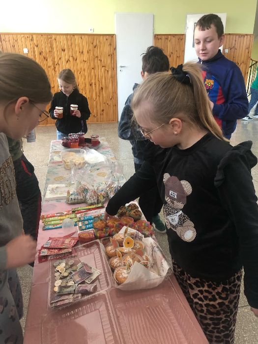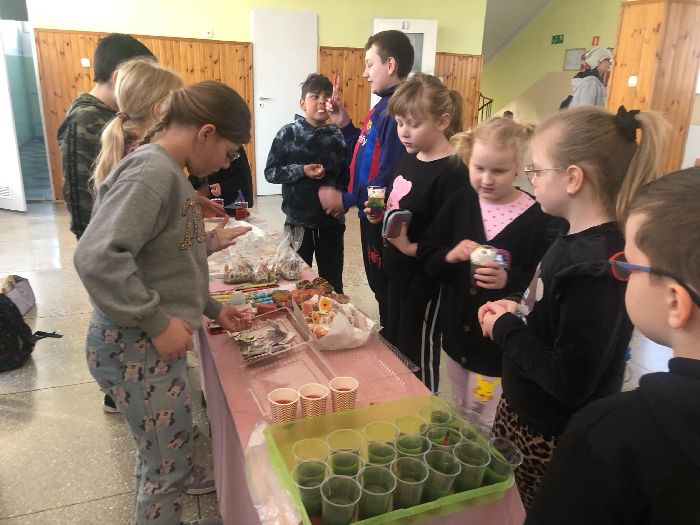 Kiermasz wielkanocnych słodkości przygotowany przez rodziców uczniów klasy III.