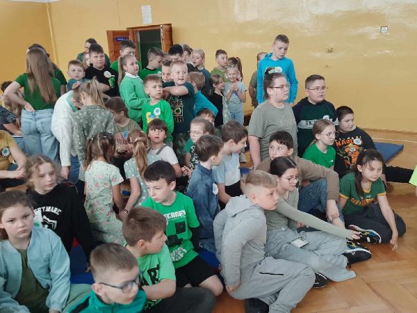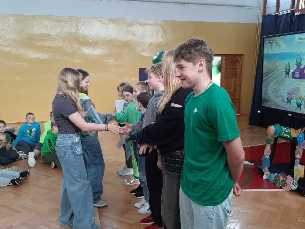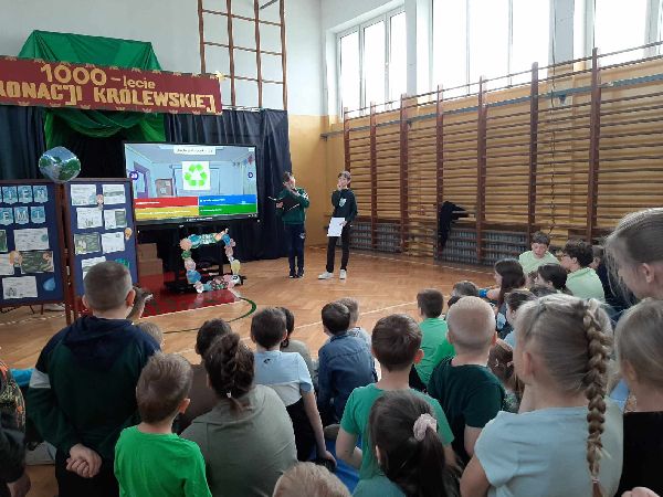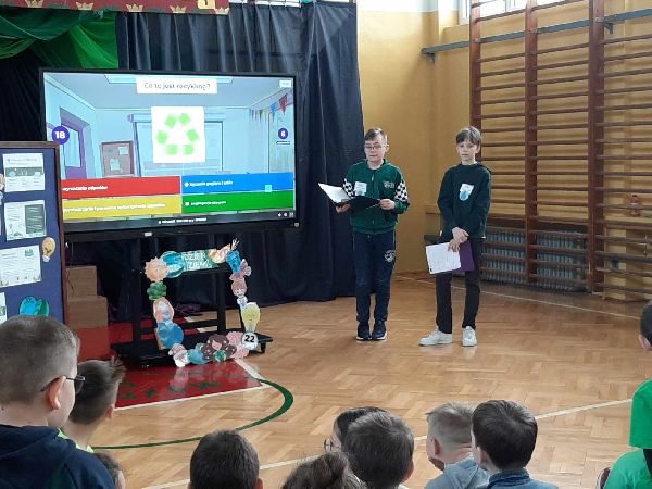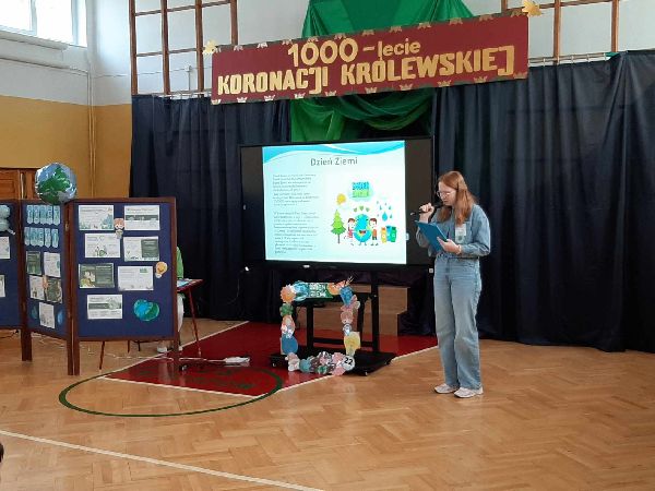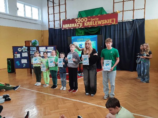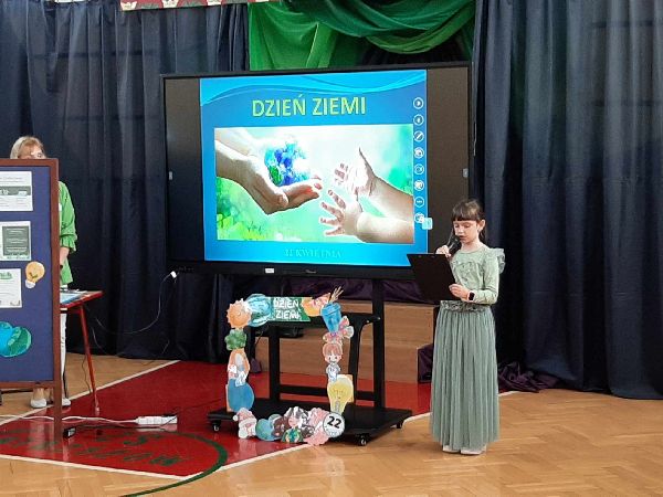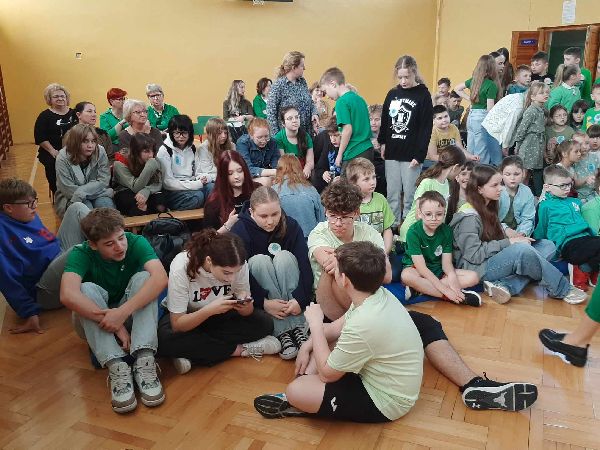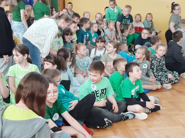23 kwietnia w naszej szkole odbył się apel z okazji Dnia Ziemi. Celem wydarzenia było uświadomienie uczniom, jak ważna jest troska o środowisko naturalne i jak każdy z nas może przyczynić się do ochrony naszej planety. Tego dnia uczniowie szkoły przyszli ubrani na zielono. Klasy dyżurujące II i VI wspólnie przygotowały dla całej społeczności szkolnej eko zadania oraz prezentację multimedialną. Przedstawiono w niej zagrożenia dla środowiska, takie jak zanieczyszczenie powietrza, wody i gleby, nadmierna produkcja odpadów, a także skutki globalnego ocieplenia. Prezentacja zawierała również przykłady codziennych działań, które mogą pomóc w ochronie Ziemi – m.in. segregowanie śmieci, oszczędzanie energii i wody, a także korzystanie z transportu ekologicznego. Po zakończeniu prezentacji uczniowie zostali zaproszeni do udziału w interaktywnej grze edukacyjnej Kahoot, która sprawdzała ich wiedzę na temat zagadnień poruszanych podczas prezentacji. Quiz cieszył się dużym zainteresowaniem – uczniowie chętnie odpowiadali na pytania, rywalizując w przyjaznej atmosferze. Była to nie tylko doskonała forma nauki, ale też okazja do zabawy i utrwalenia ważnych informacji w niecodzienny sposób. Apel zakończył się krótkim podsumowaniem oraz przypomnieniem, że troska o środowisko to zadanie dla każdego – nie tylko od święta, ale przez cały rok.