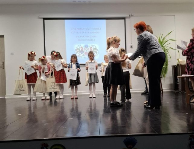 W kategorii klas I-III nagrodę otrzymał Maciej Zgliniecki ze Szkoły Podstawowej w Strzyżowie, Iga Zienkiewicz reprezentującą Bibliotekę szkolną przy Szkole Podstawowej w Strzyżowie oraz Maja Sałęga- reprezentantka Świetlicy Wiejskiej w Strzyżowie. Wyróżnione zostały Jagoda Modzelewska- recytatorka wystawiona przez Świetlicę Wiejską w Strzyżowie, Aniela Zuwalska ze Szkoły Podstawowej im.T.Kościuszki w Husynnem oraz Lena Kot ze Szkoły Podstawowej w Strzyżowie. W kategorii klas IV-VI nagrodę otrzymali: Maciej Szczasiuk i Milena Smoła ze Szkoły Podstawowej im. Papieża Jana Pawła II w Uchaniach, Dominika Dudek reprezentująca Świetlicę Wiejską w Strzyżowie. Wyróżnione zostały Zuzanna Maślanka ze Szkoły Podstawowej im. T. Kościuszki w Husynnem oraz Urszula Mech ze Szkoły Podstawowej im. Papieża Jana Pawła II w Uchaniach. W Kategorii klas VII-VIII nagrodę zdobyły uczennice Szkoły Podstawowej im. Króla Władysława Jagiełły w Horodle -Milena Kuna i Julia Chmielewska. W kategorii szkół ponadpodstawowych nagrodę otrzymała Oliwia Grabarczuk z Zespołu Szkół w Horodle. Serdecznie dziękujemy za tak liczną reprezentację szkół i zapraszamy za rok.